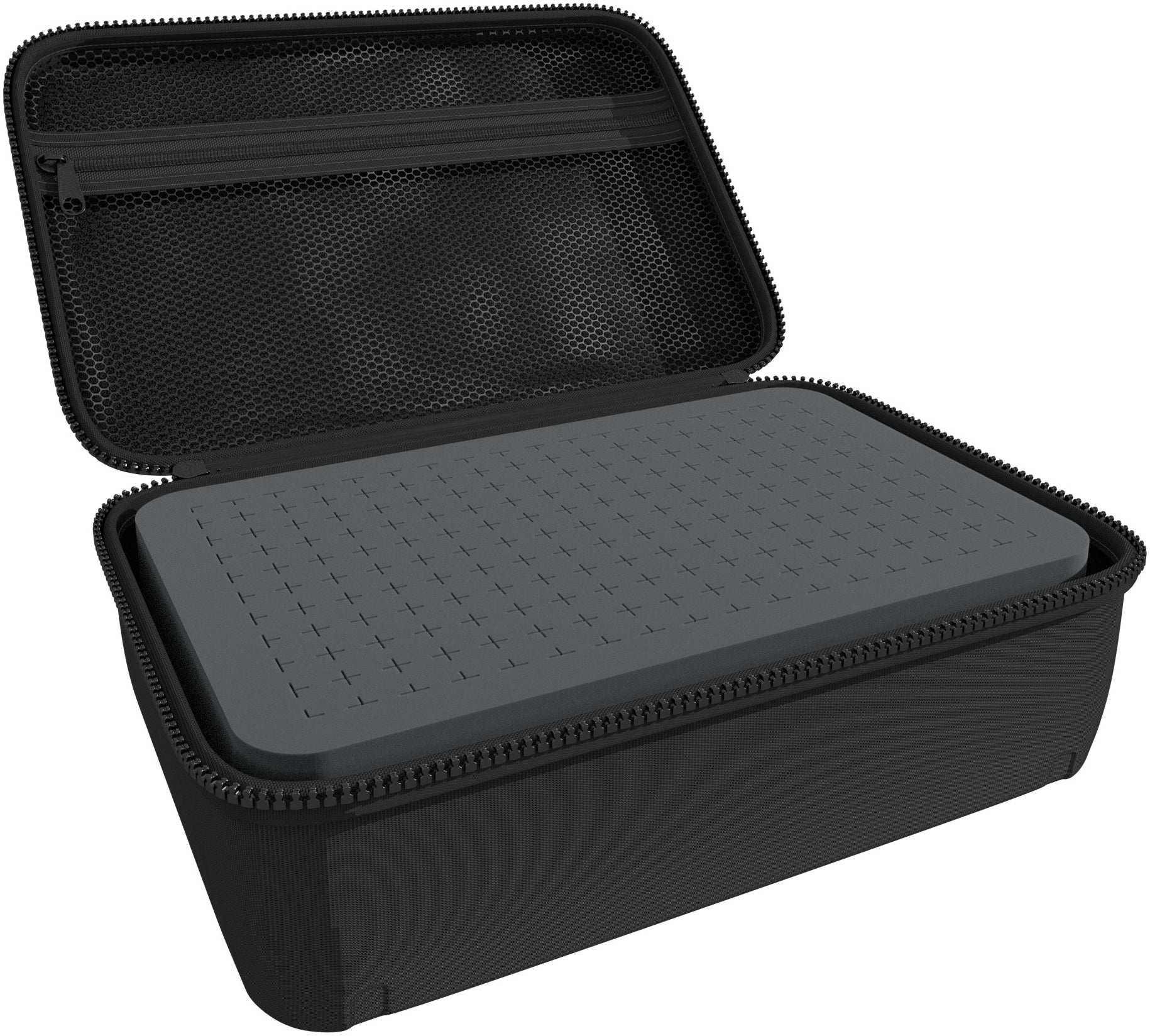 The HS Case 90 is made of durable and still lightweight EVA. The black polyester cover and the handy shape provide an elegant finish, and the contents are optimally protected from external influences. An inside pocket with a zipper offers additional space for sheets, writing material, and other small pieces.