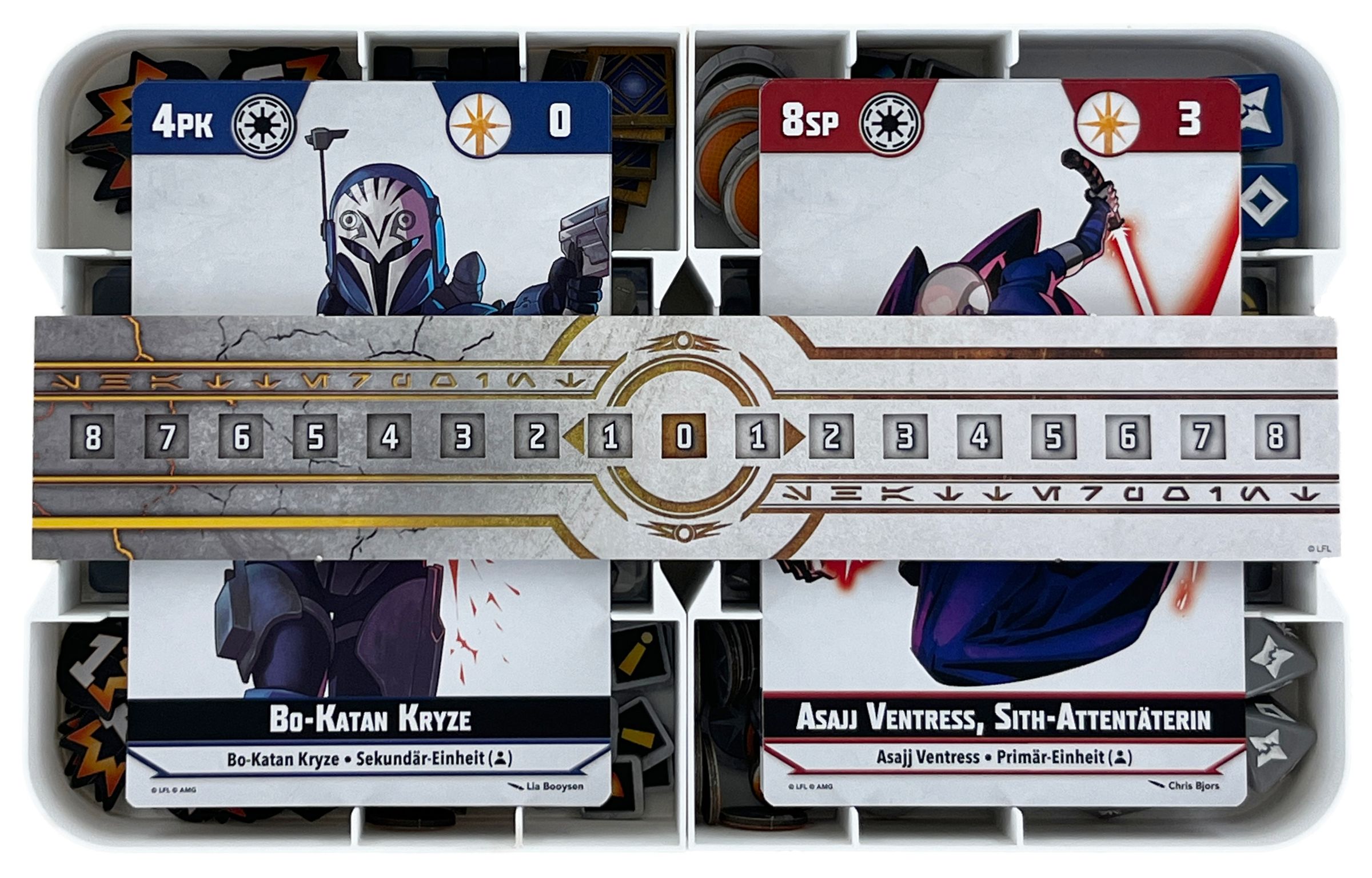 - The set offers space for the game material, the large-format cards, and the tarot-format cards from Star Wars: Shatterpoint