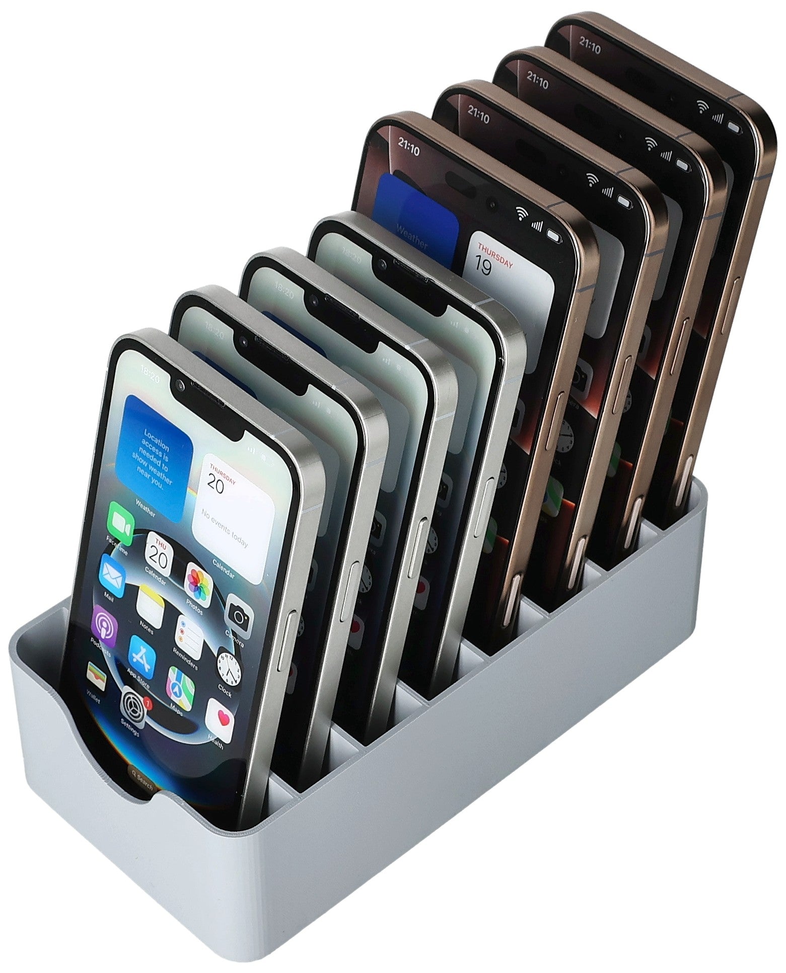 Don't worry, we have the right solution for your problem: This Feldherr smartphone parking lot offers space for up to 8 mobile phones with and without a case.