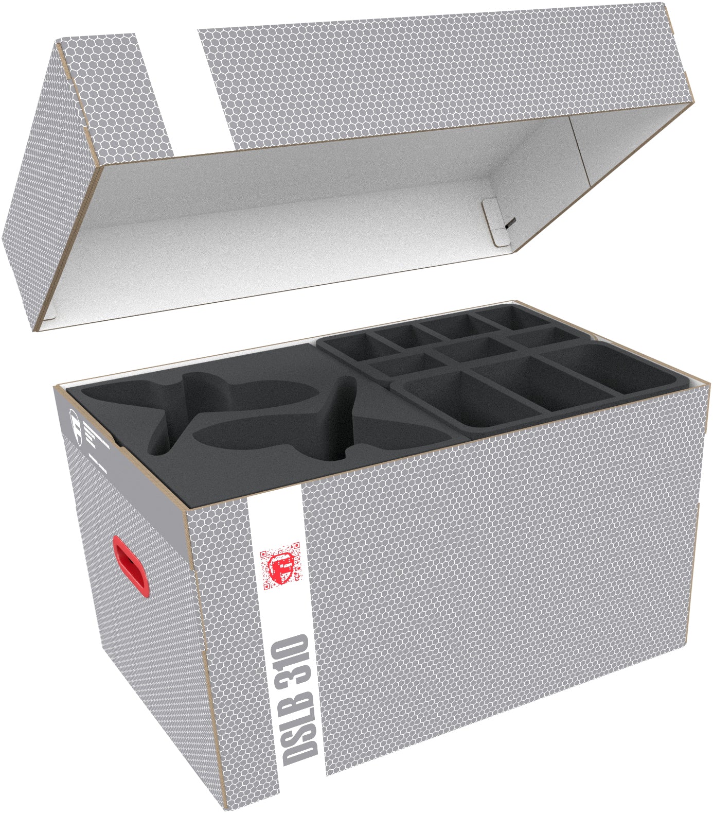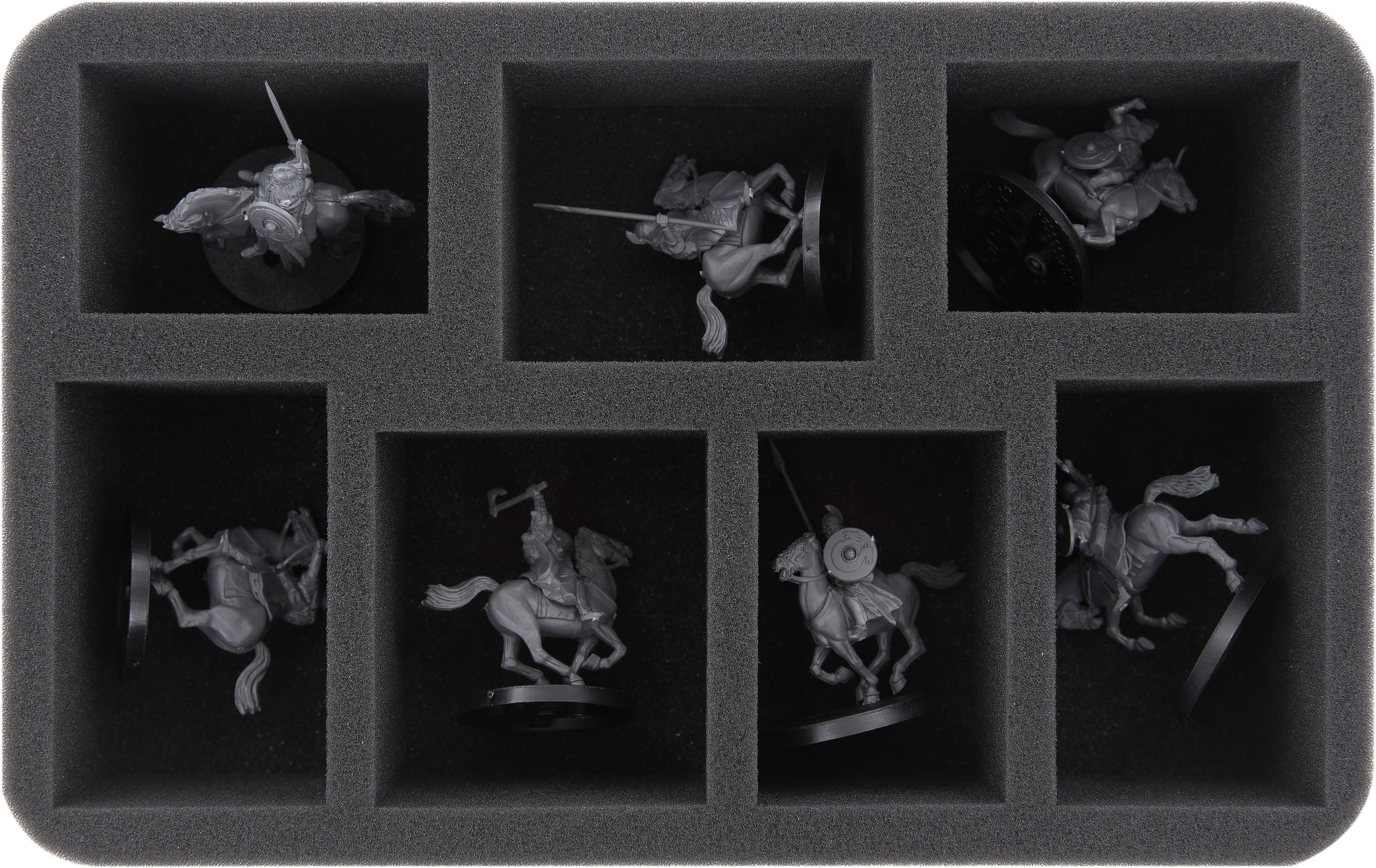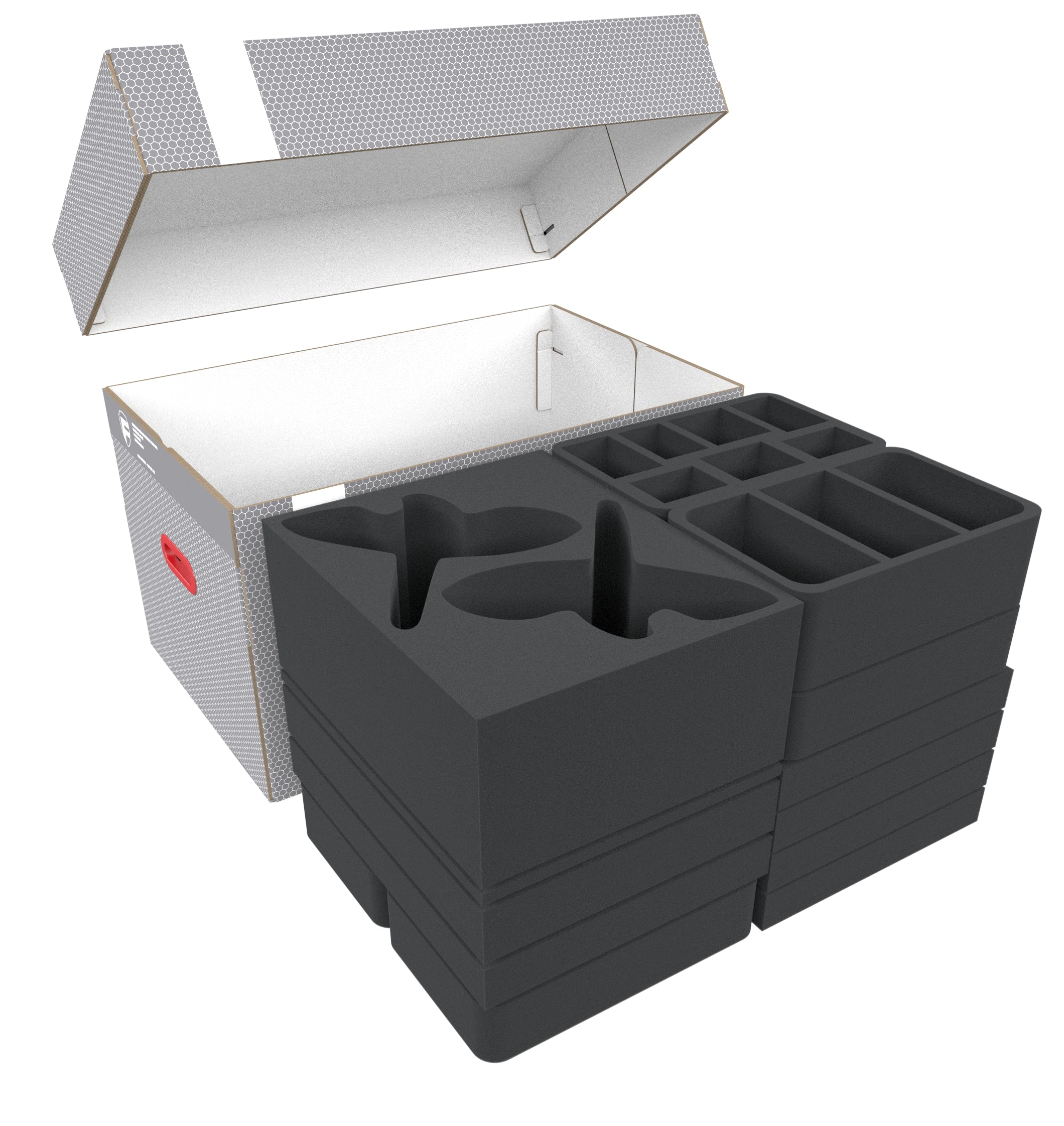 - 2 Half-Size foam trays each with 3 compartments for large miniatures (HSDF085BO)