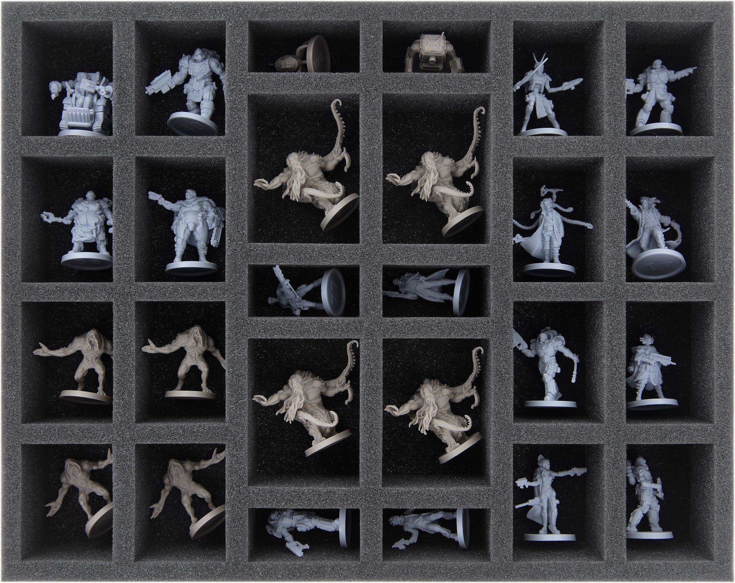 - 1 Full-Size foam tray with 25 compartments for miniatures (FSLQ040BO)