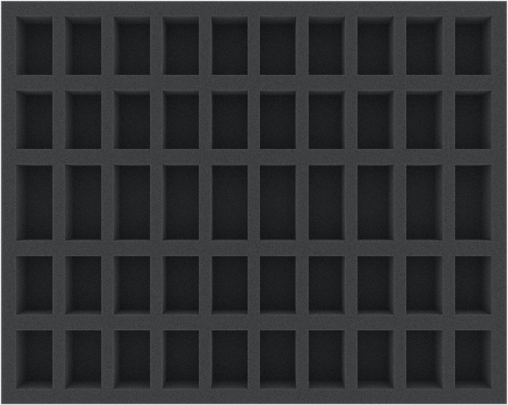 The foam tray has 50 compartments which will hold up to 50 small miniatures of various board games and Tabletop systems. The fine-pored foam reliably protects your miniatures – fragile parts remain intact, the color of painted models remains unharmed.