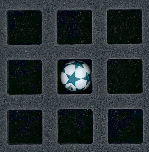 The 40 mm high Half-Size foam insert provides space for two Subbuteo teams. Each team gets custom compartments for 12 field player figures and one goalie.