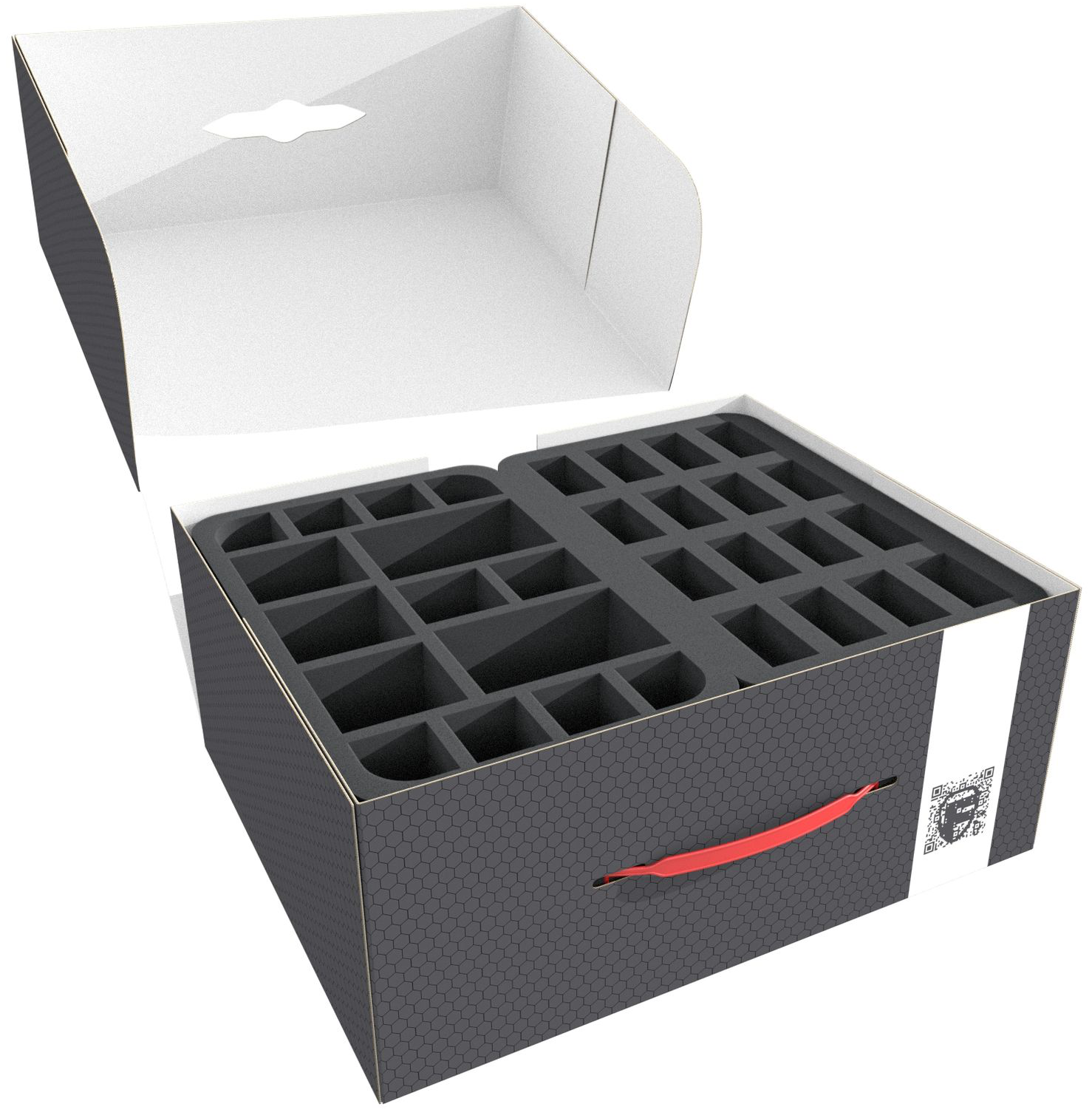The “Tsukuyumi - After the Moonfall” expansion not only introduces 2 brand-new factions, but also includes brand-new cards, game material and 43 fantastic miniatures. To prevent your models from being damaged during transport and to keep your game material neatly sorted, there is the matching Storage Box, including custom Feldherr foam trays.