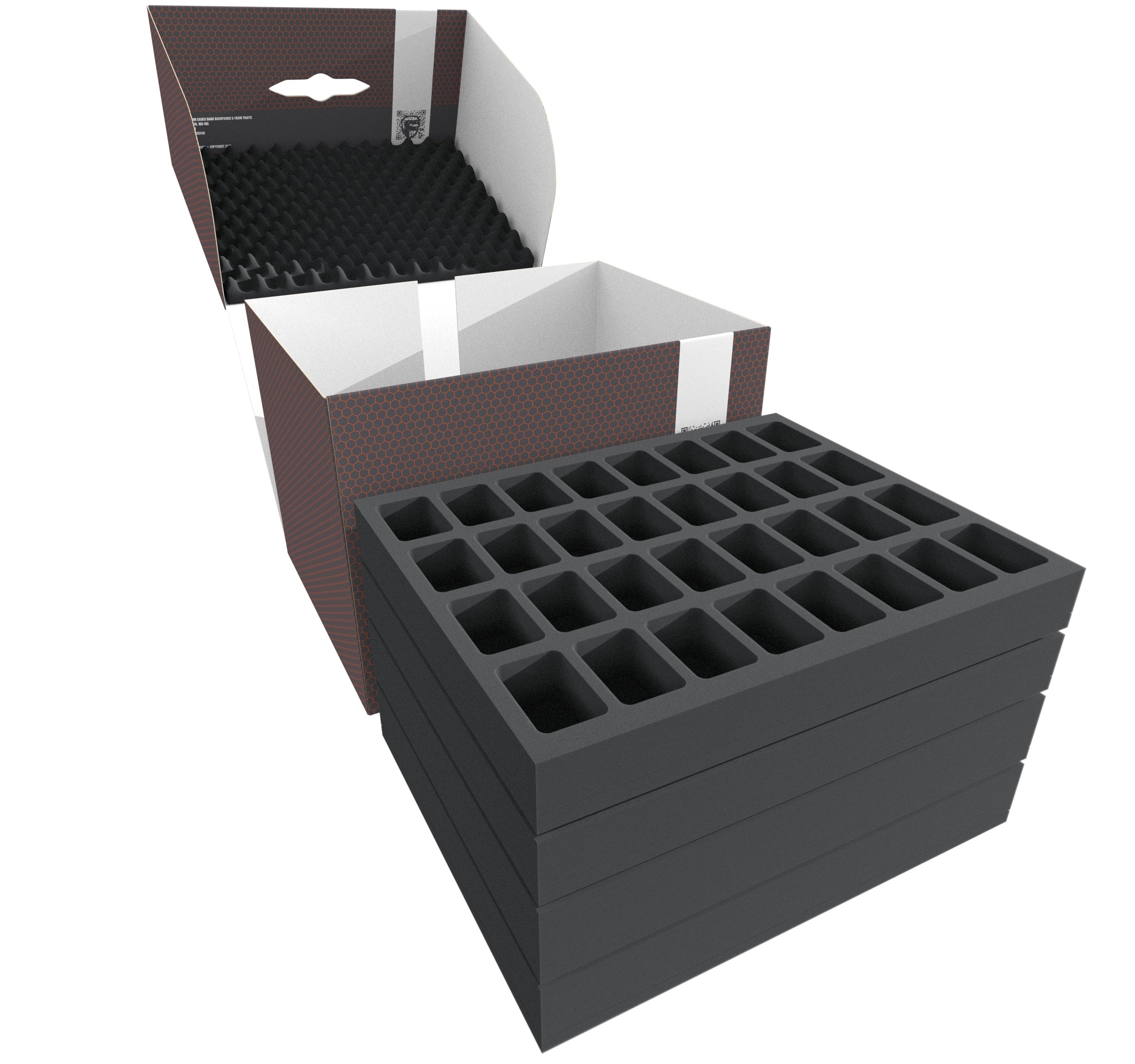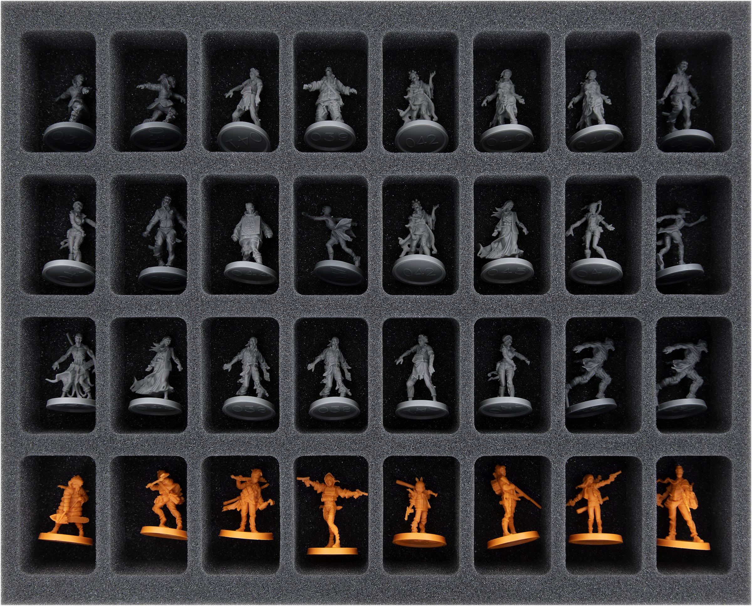 - 2 Full-Size foam trays for 32 compartments each for Zombie and Survivor miniatures (FSMEDS040BO)