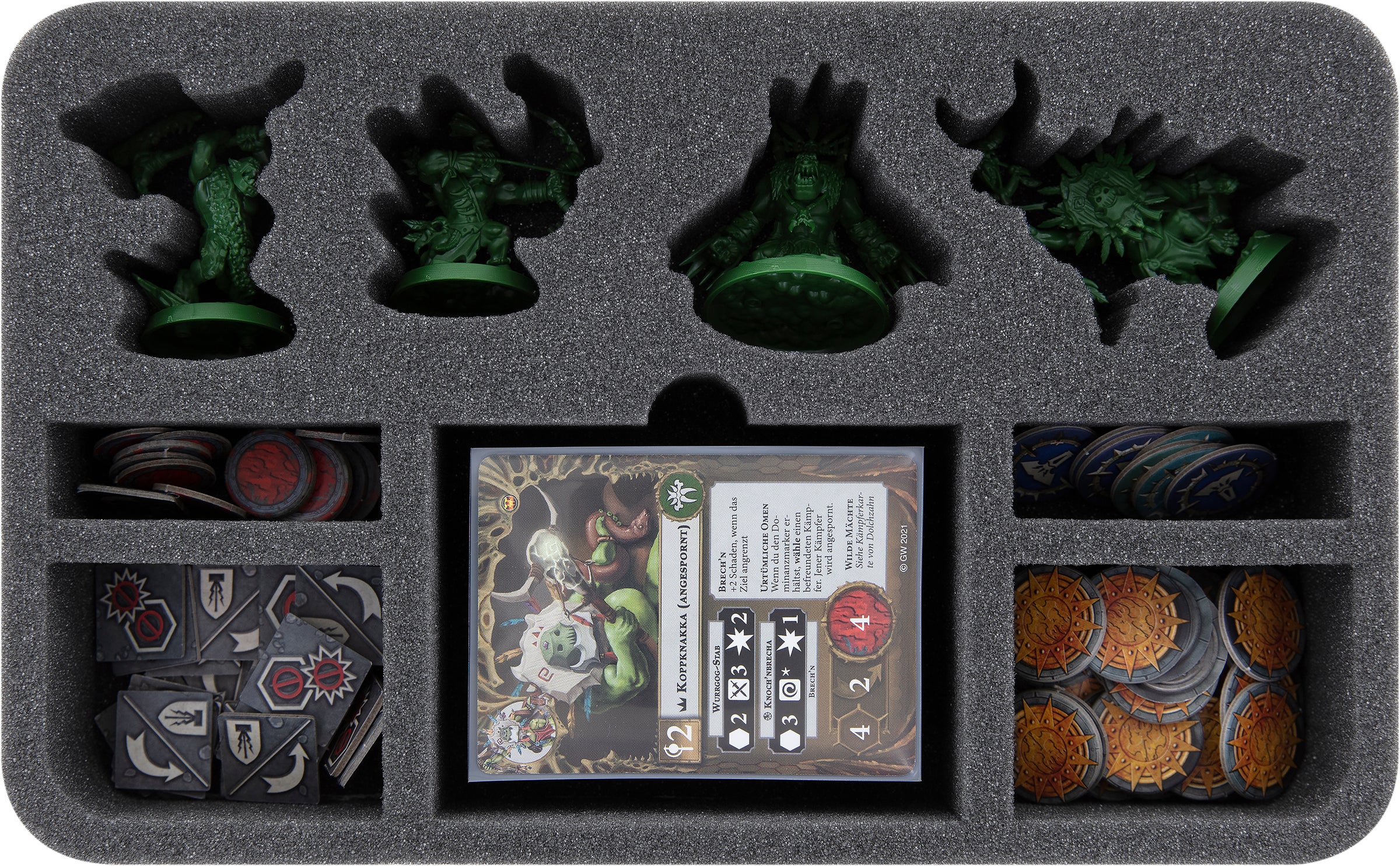 To ensure that Hedkrakka's Madmob arrives at Beastgrave unscathed, here's the custom Feldherr foam insert to protect your miniatures.