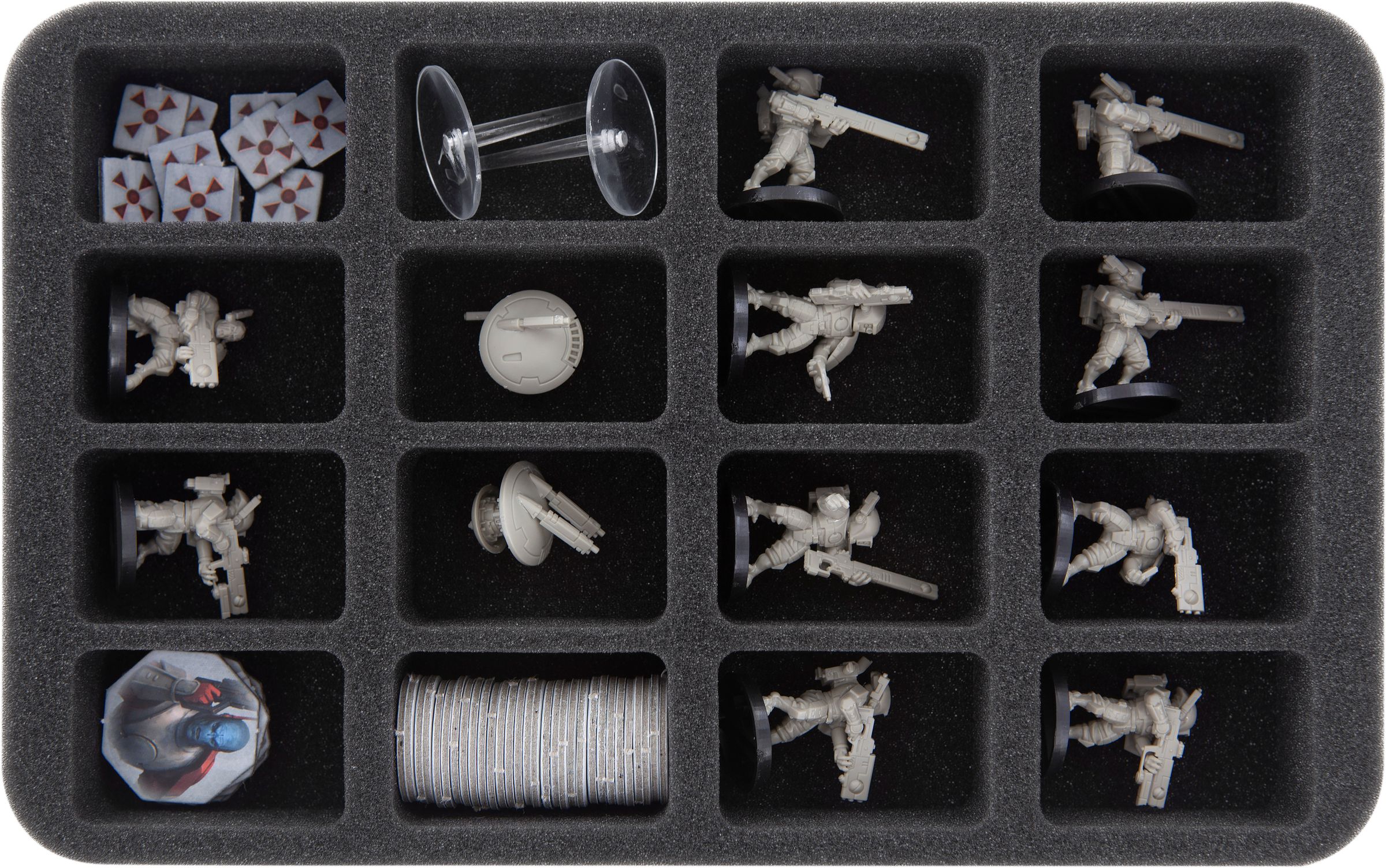- 1 Half-Size foam tray with 16 compartments for e.g. additional Fire Warriors or other infantry (HS040BF05BO)