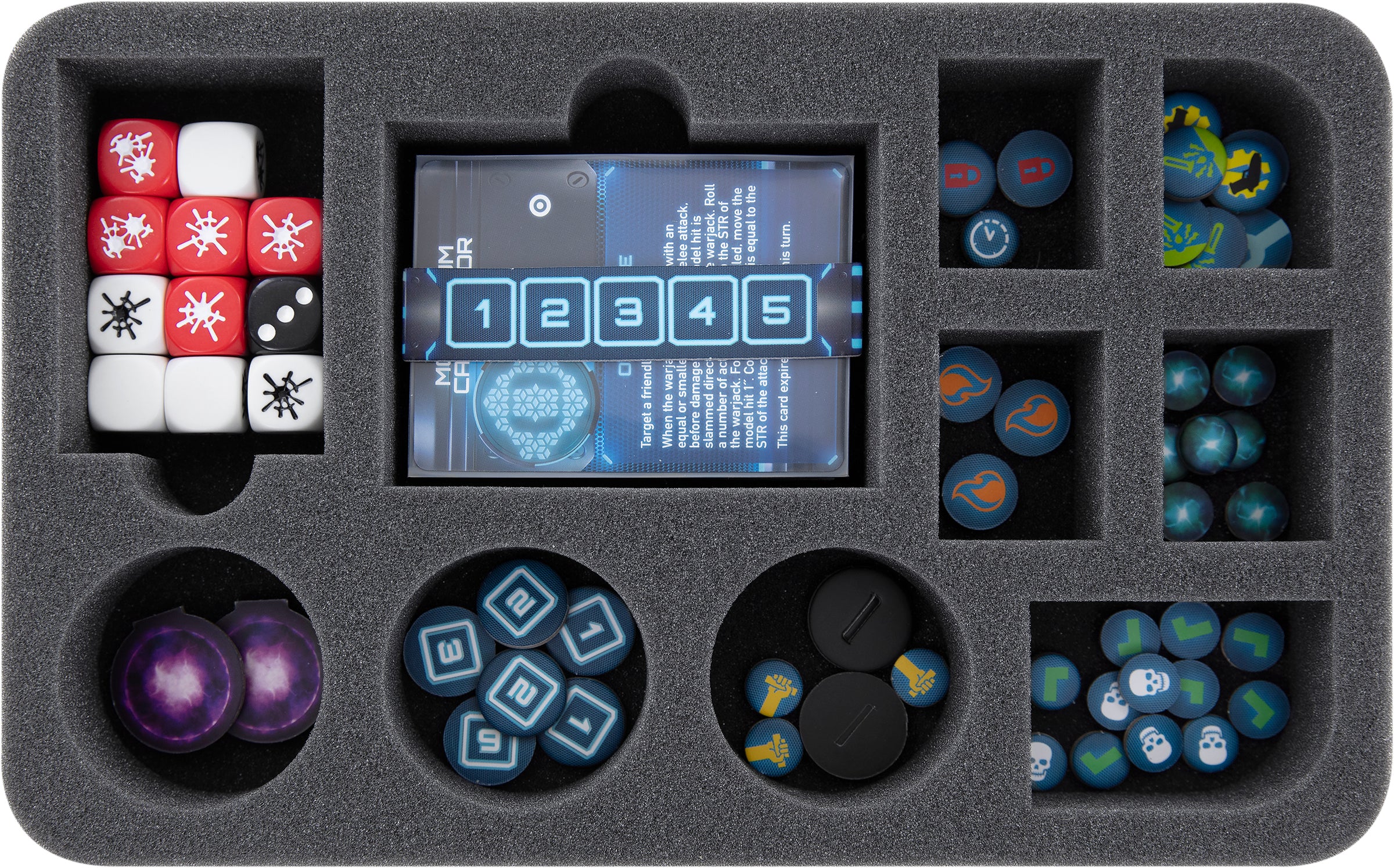 - 2 Half-Size foam trays with 10 compartments each, for Warjacks, Small and Medium Base Miniatures (HSMFAH070BO)