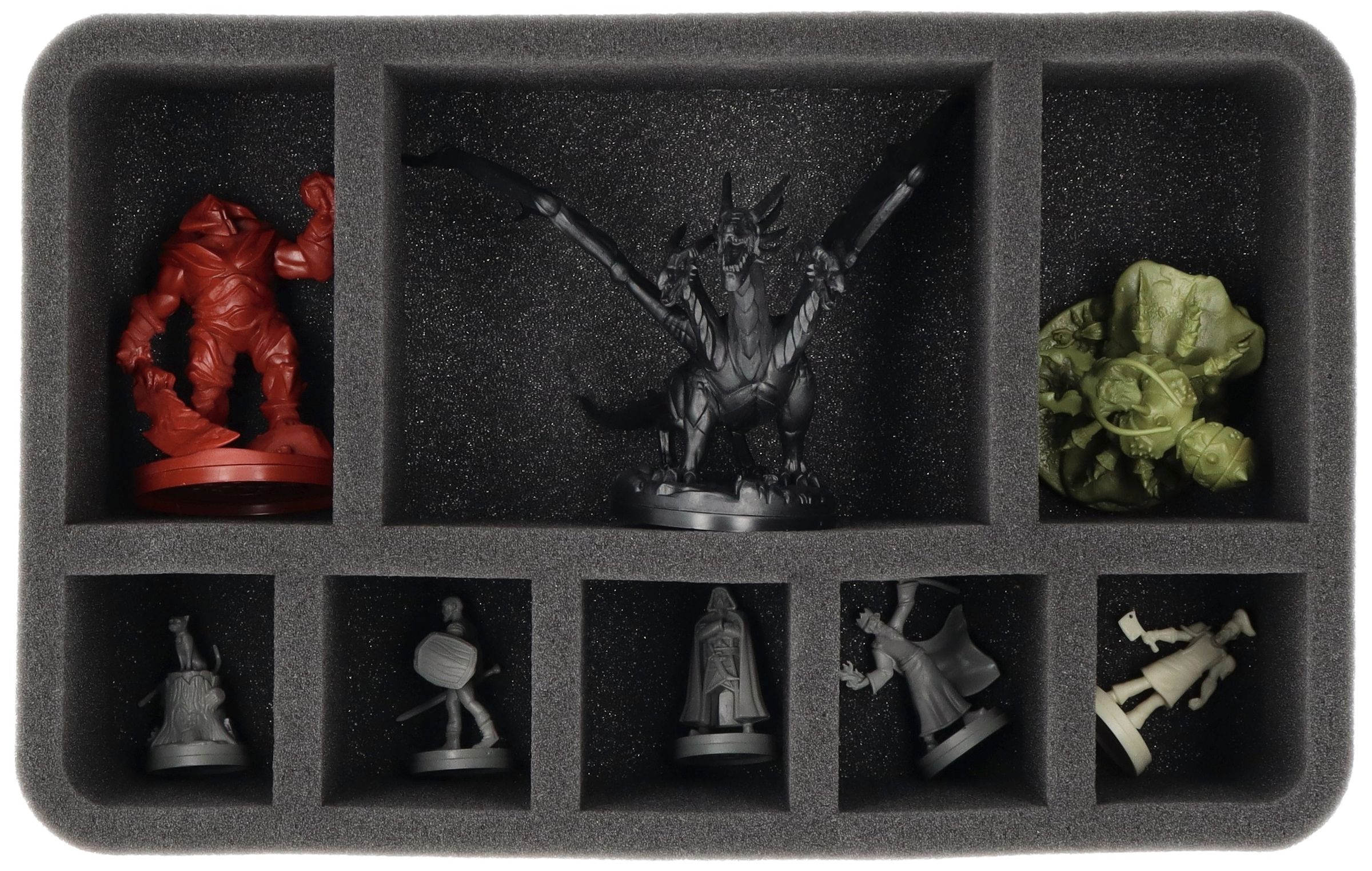 The Half-Size foam tray provides your miniatures with a safe haven - each miniature has its own custom-fit cut compartment.