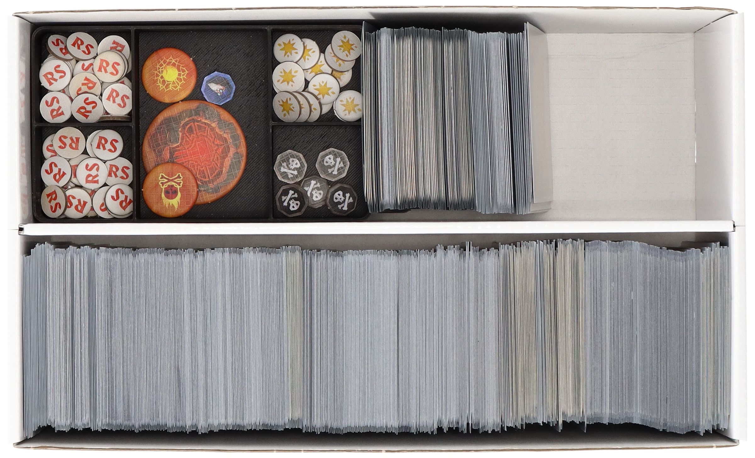 - You can store small-sized game material and cards in the Storage Box TCHS105 with Organizer inserts.