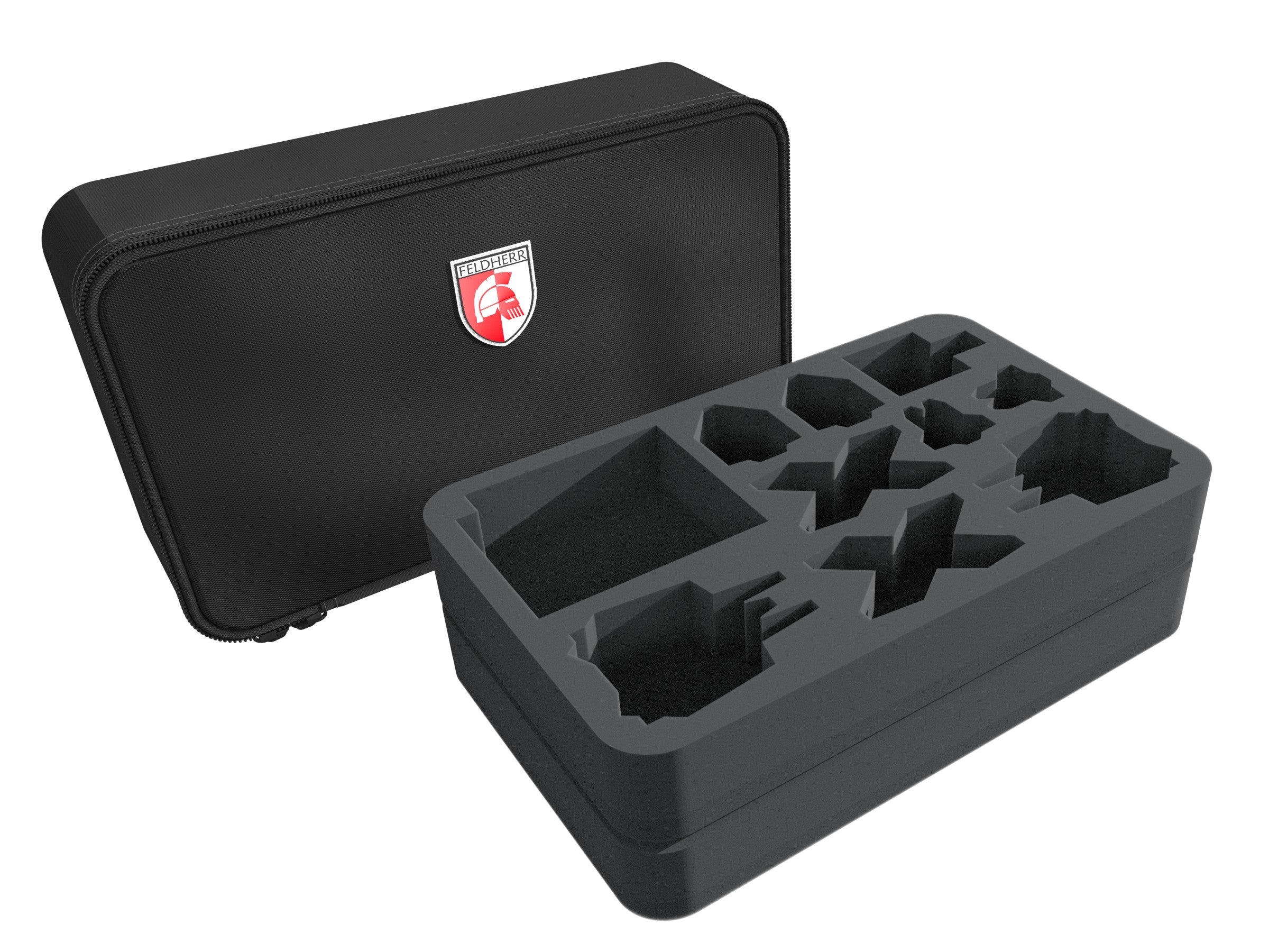 El Feldherr MINI Case almacena el StarViper, IG-2000, M3-A y hasta 13 naves estelares y accesorios. Será suficiente espacio para tarjetas (en fundas), bases grandes y pequeñas.