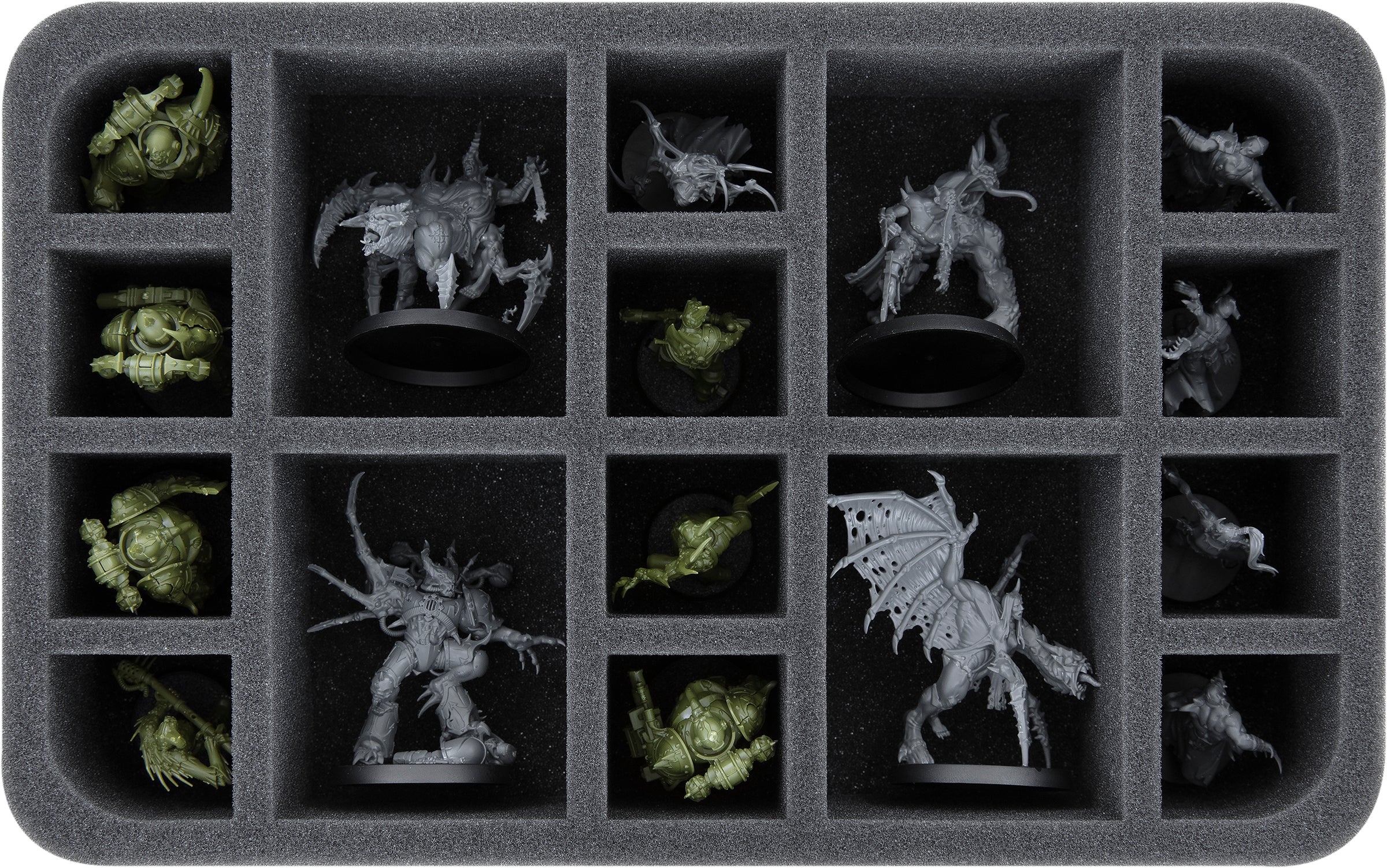 - 1 Half-Size foam tray with 16 compartments for Chaos Space Marines, Dark Disciple, Dark Apostle and 4 free compartments (HS060A061)