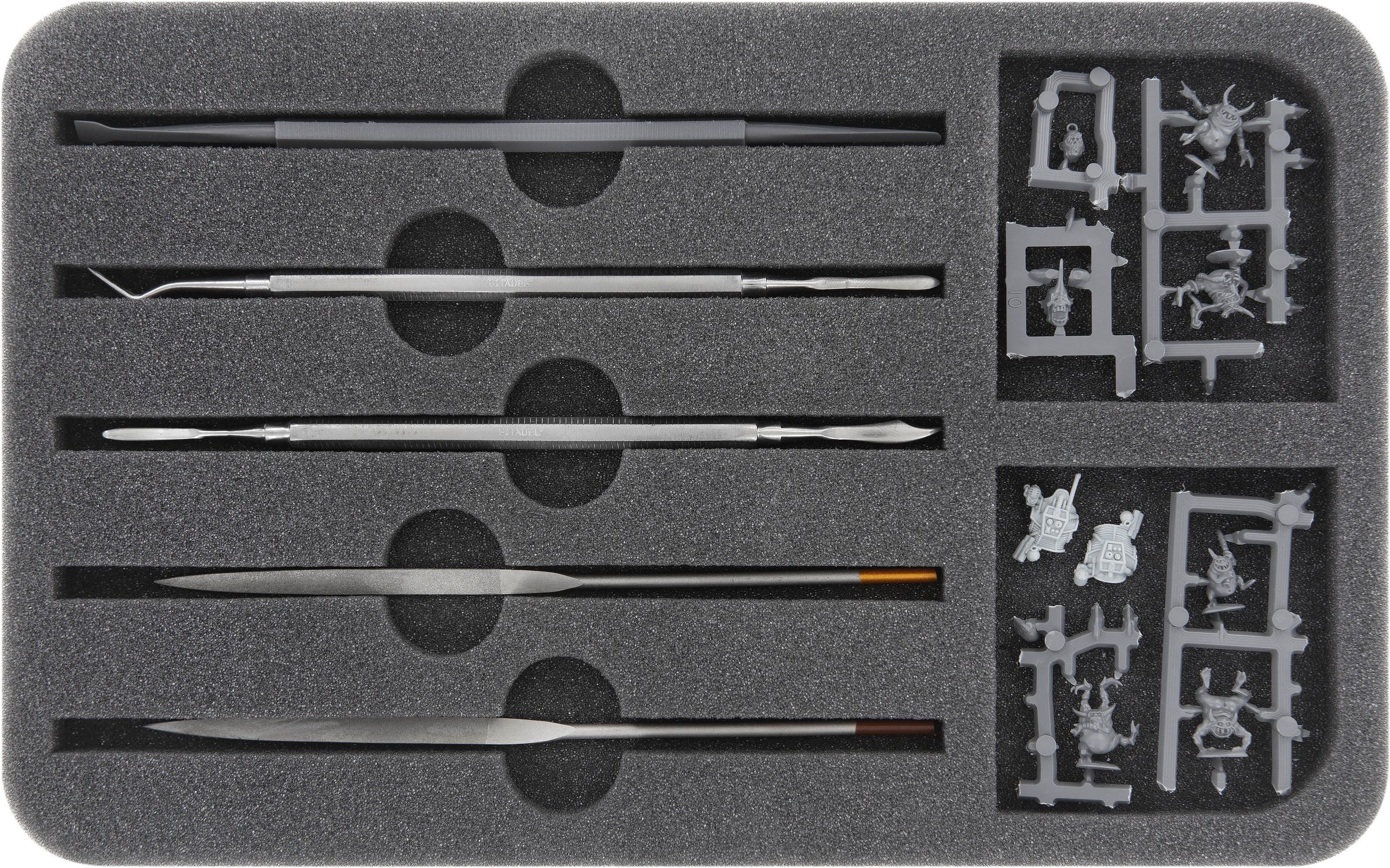 Two further foam trays provide space for your Citadel tools. There are custom compartments for the following tools: