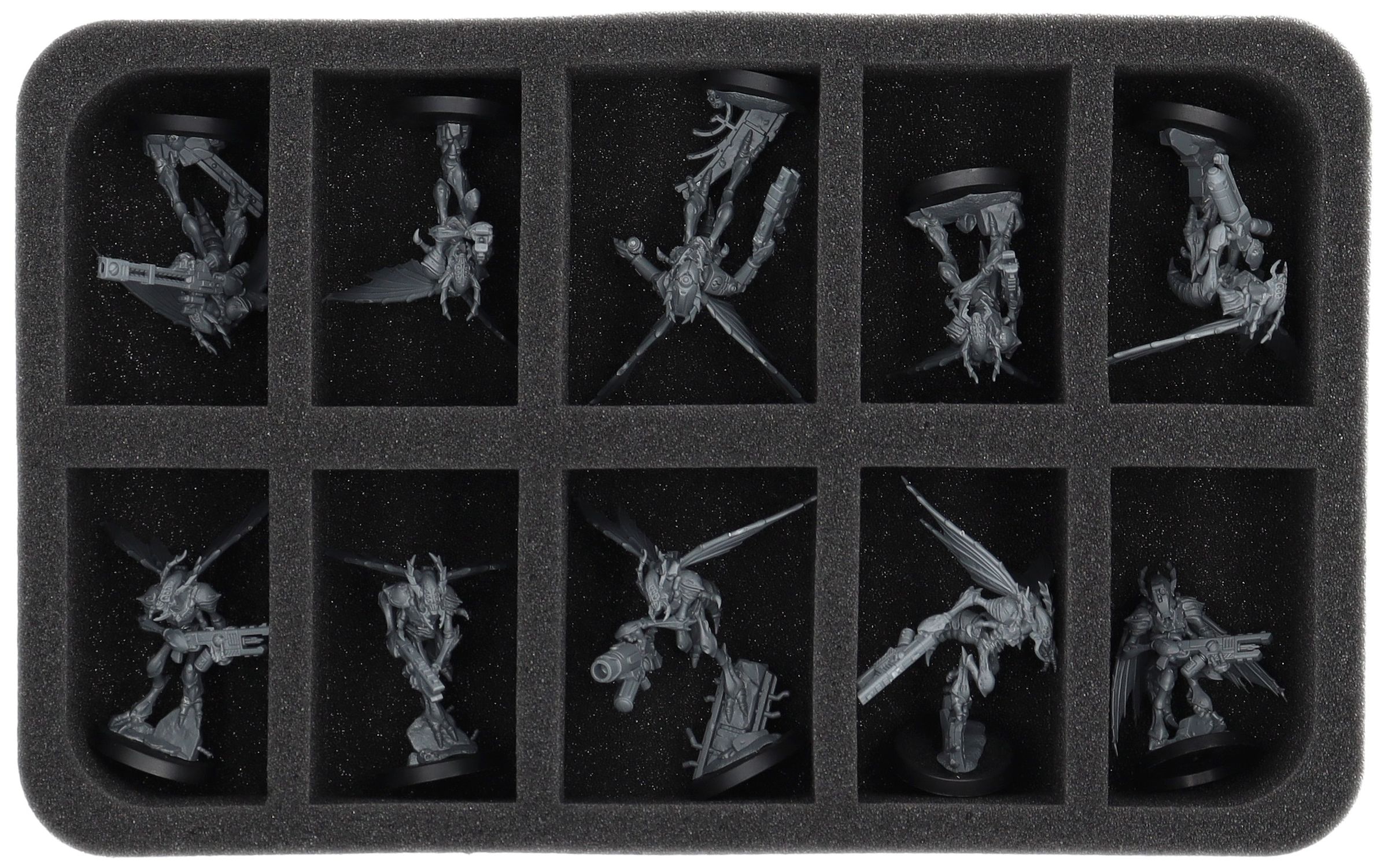 - 1 x HSBE060BO – Half-Size foam tray with 10 compartments for e.g. Tempestus Aquilon, Vespid Stingwing and further models