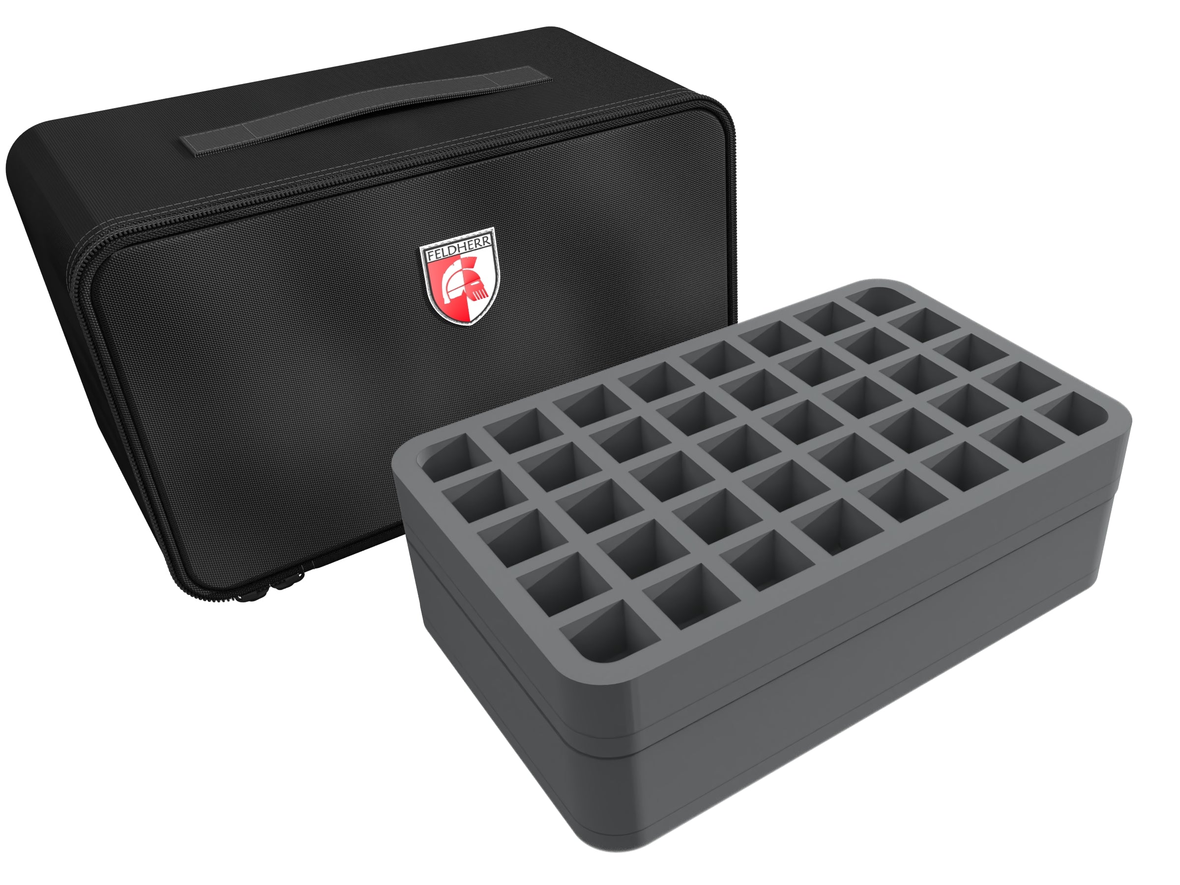 In this compact MINI PLUS bag your miniatures are optimally protected. You can safely transport up to 61 warrior figures to the battlefield in the custom Feldherr foam trays.