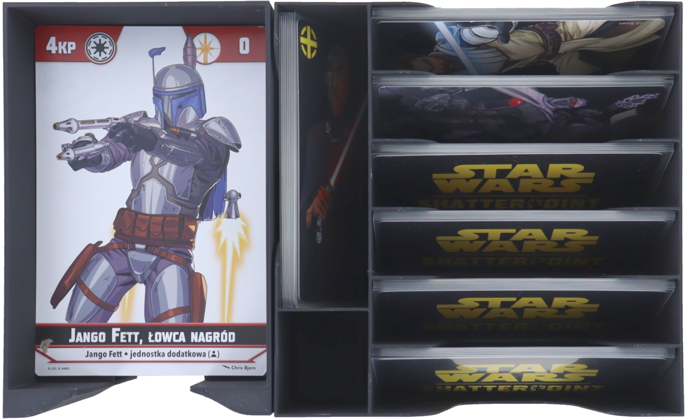 - The set provides space for playing cards and game components from Star Wars: Shatterpoint.