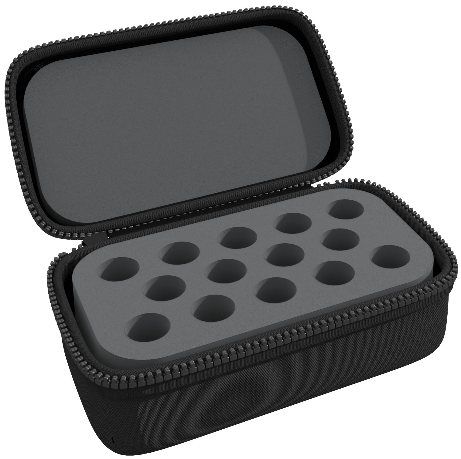 The MINIMUM Case is made from durable yet lightweight EVA material. The black polyester cover and ergonomic shape give the box a stylish appearance. The contents are thus protected all around from scratches, breakage, and other damage.