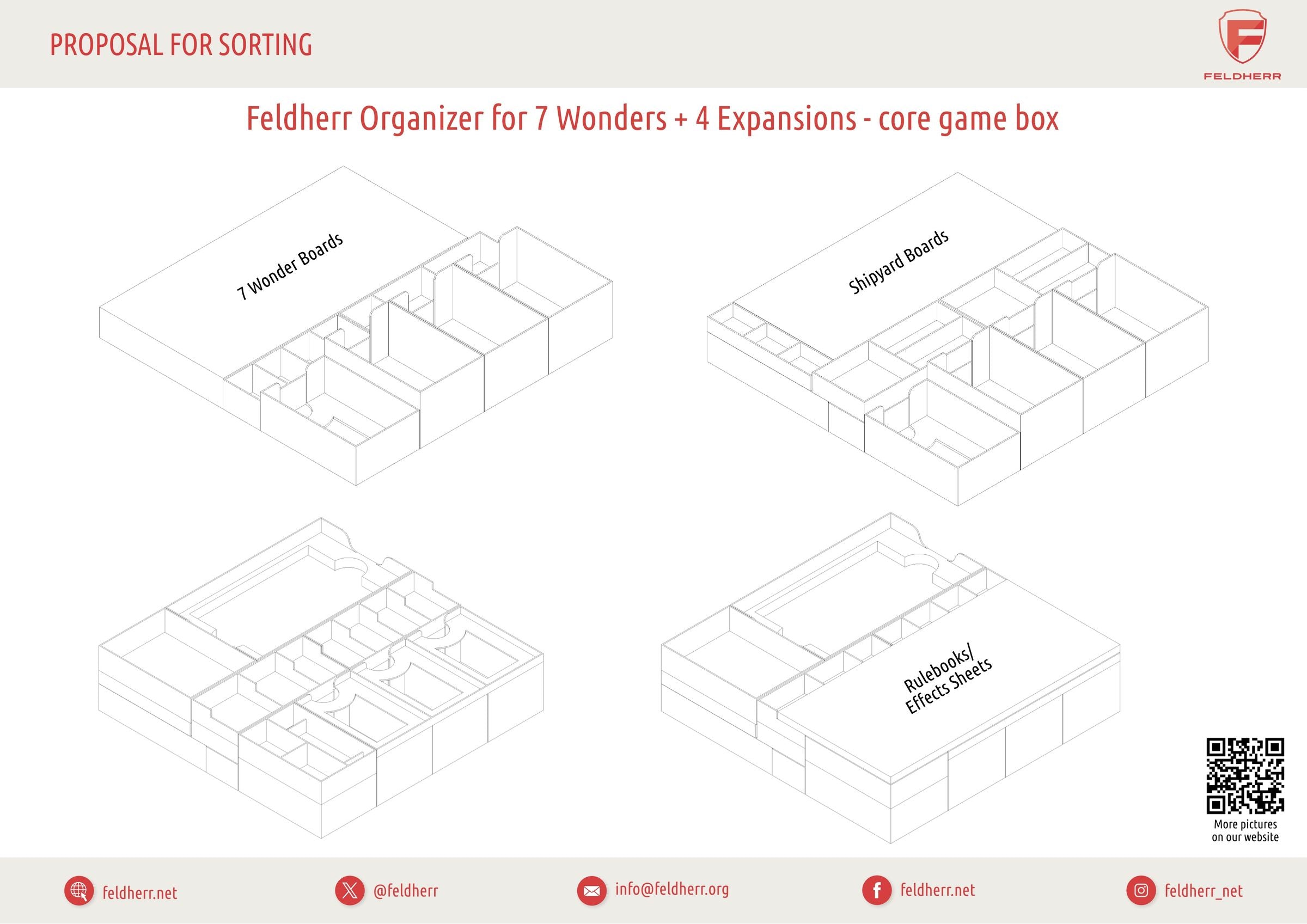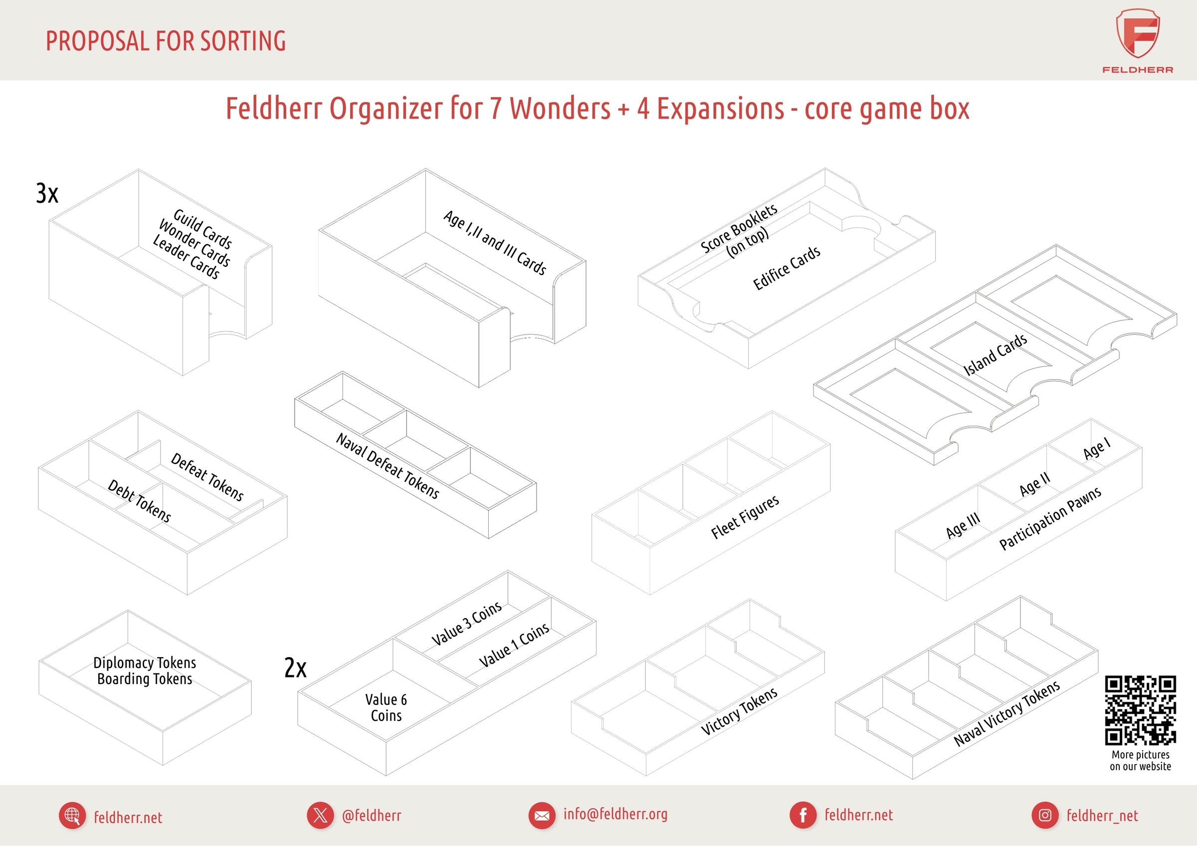 To ensure that your city shines in all its glory, we support you with the matching Feldherr Organizer for the 7 Wonders (Second Edition) core game and the 4 expansions. It keeps the board game box tidy and gives the gameplay a clear structure.