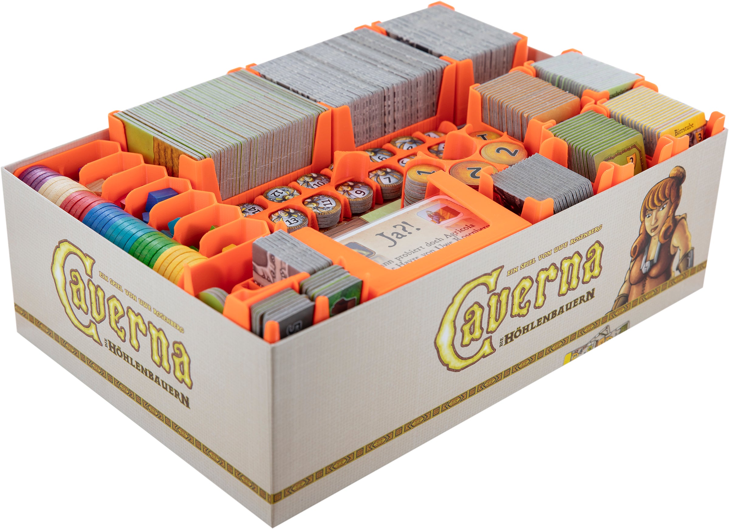 - The Organizer offers space for all game components from the "Caverna - The Cave Builders" core game by Lookout Games.