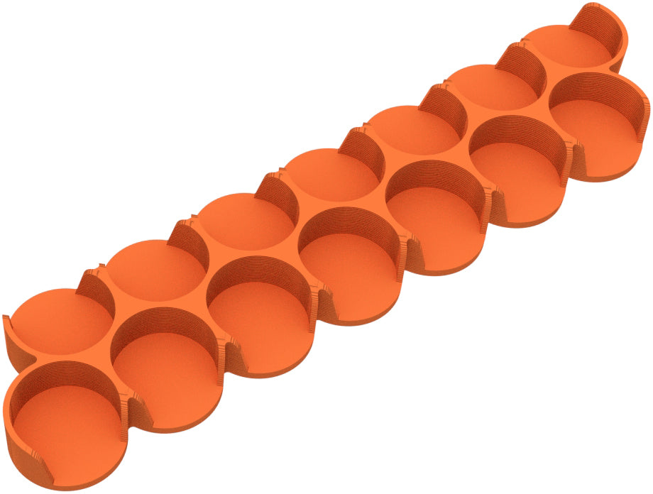 1 long, narrow combat tray with circular shapes and practical handle