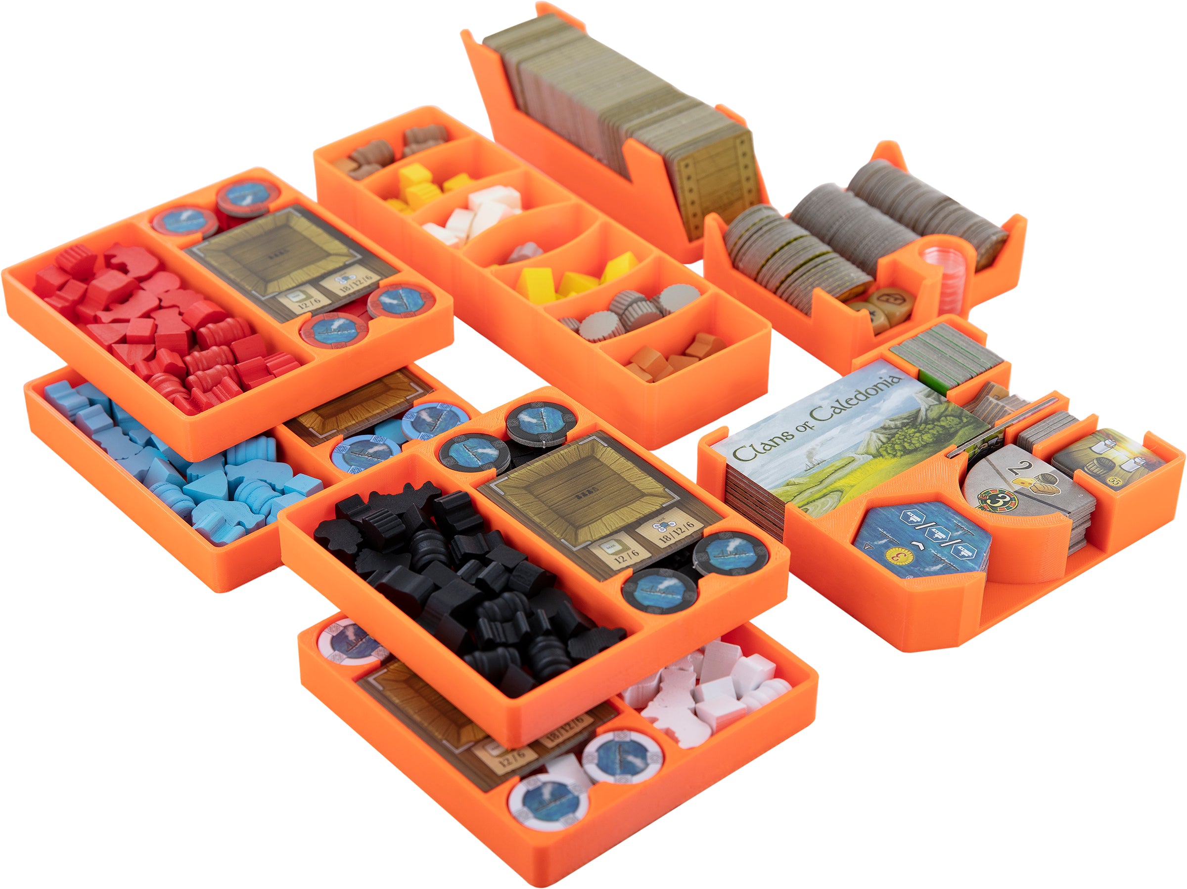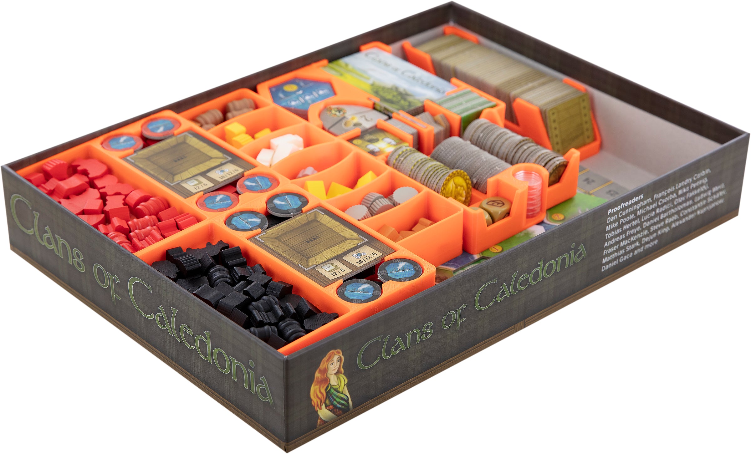 - The organizer offers enough space for all the game materials from the "Clans of Caledonia" core game by Karma Games.