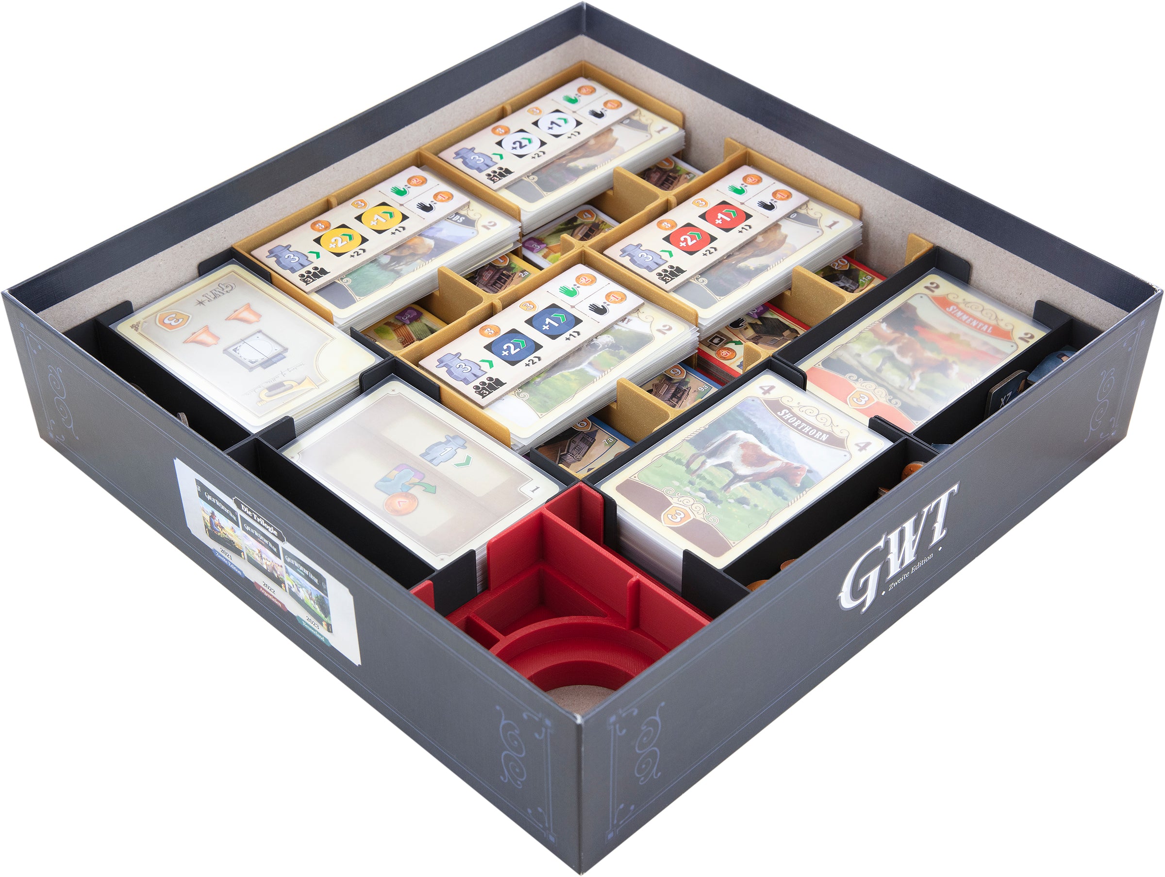 - For use with “Great Western Trail: Argentinien,” a red tray is included for storing the country and ship tiles.