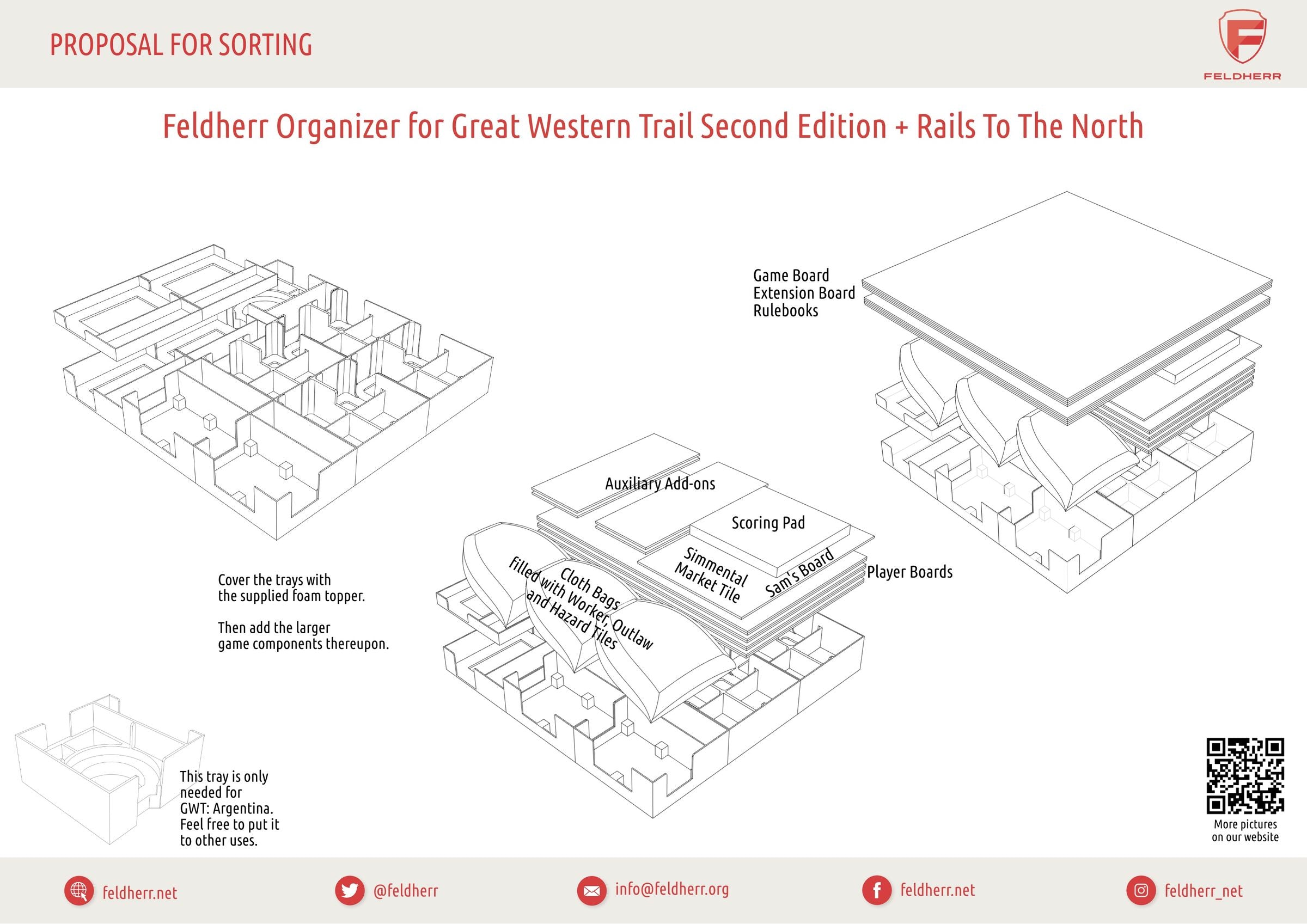- The Organizer provides storage space for all game components from the “Great Western Trail (Second Edition)” core game, plus expansion, or for all contents of the “Great Western Trail: Argentinien” core game.