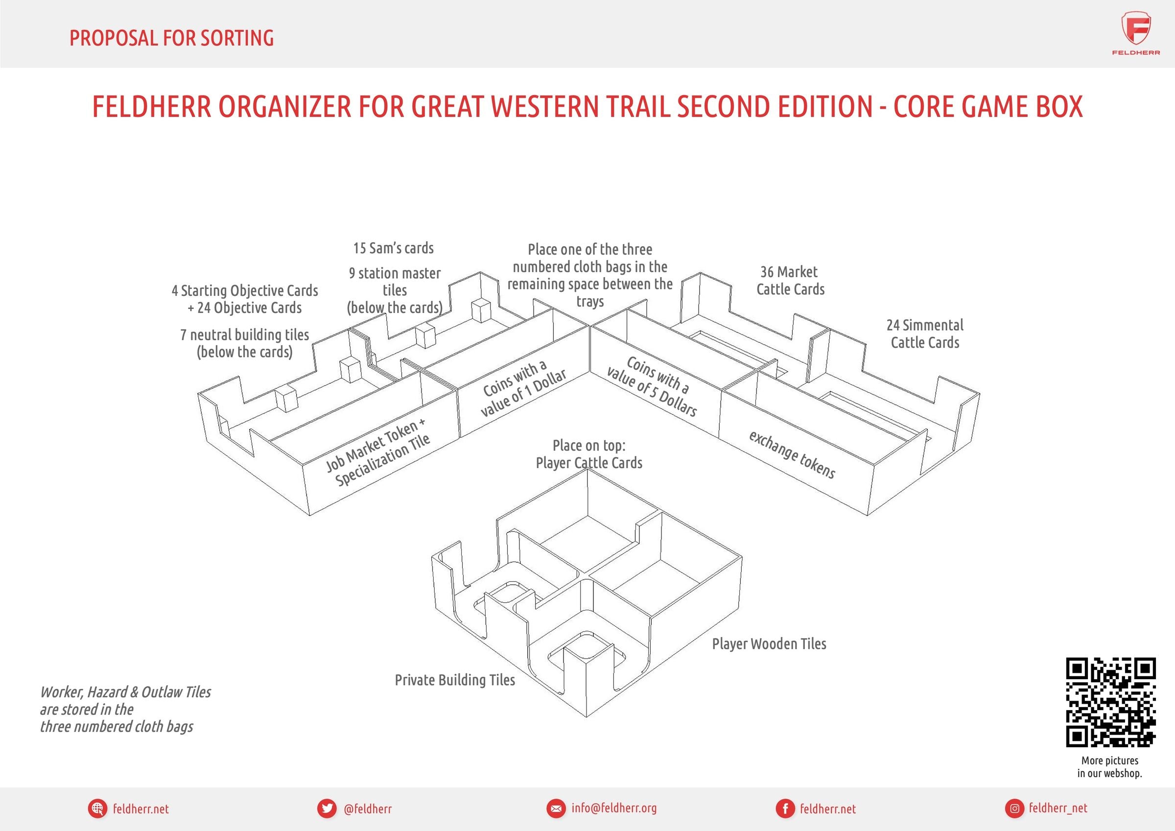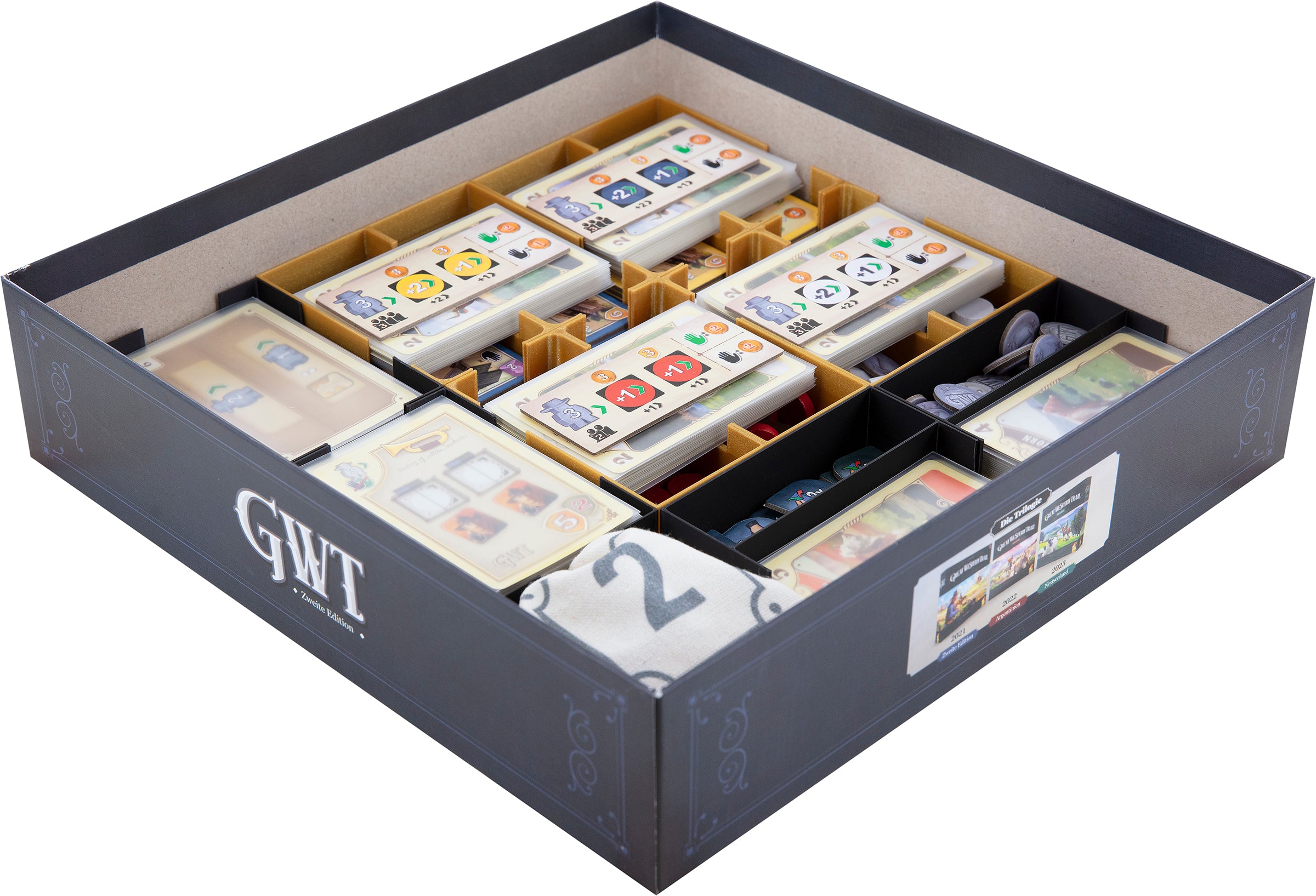 - The Organizer provides space for all game materials from the “Great Western Trail (Second Edition)” core game by eggertspiele.