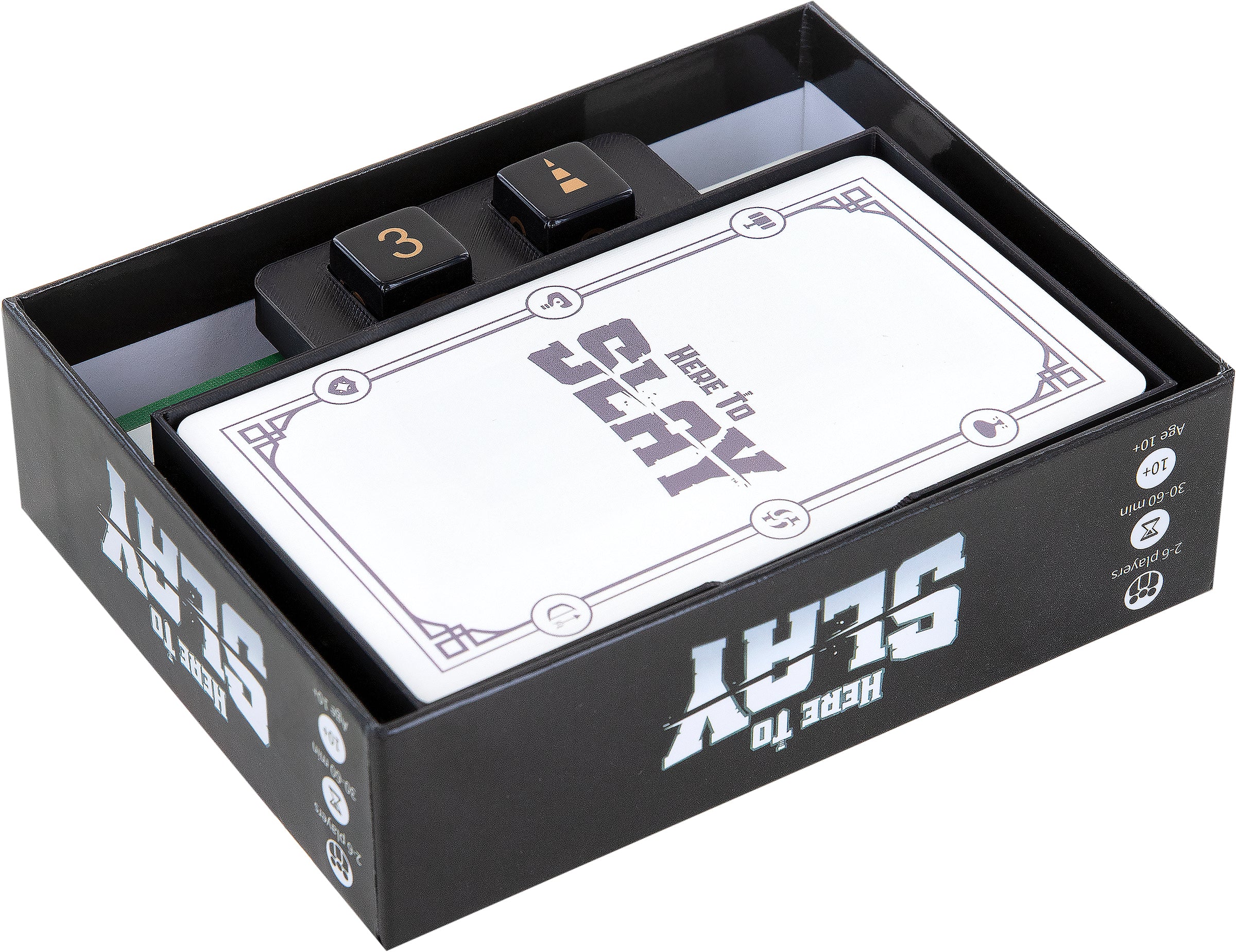 - The card holder set fits exactly into the original "Here to Slay" core game box (dimensions of the Organizer: 131 mm x 99 mm x 38 mm).