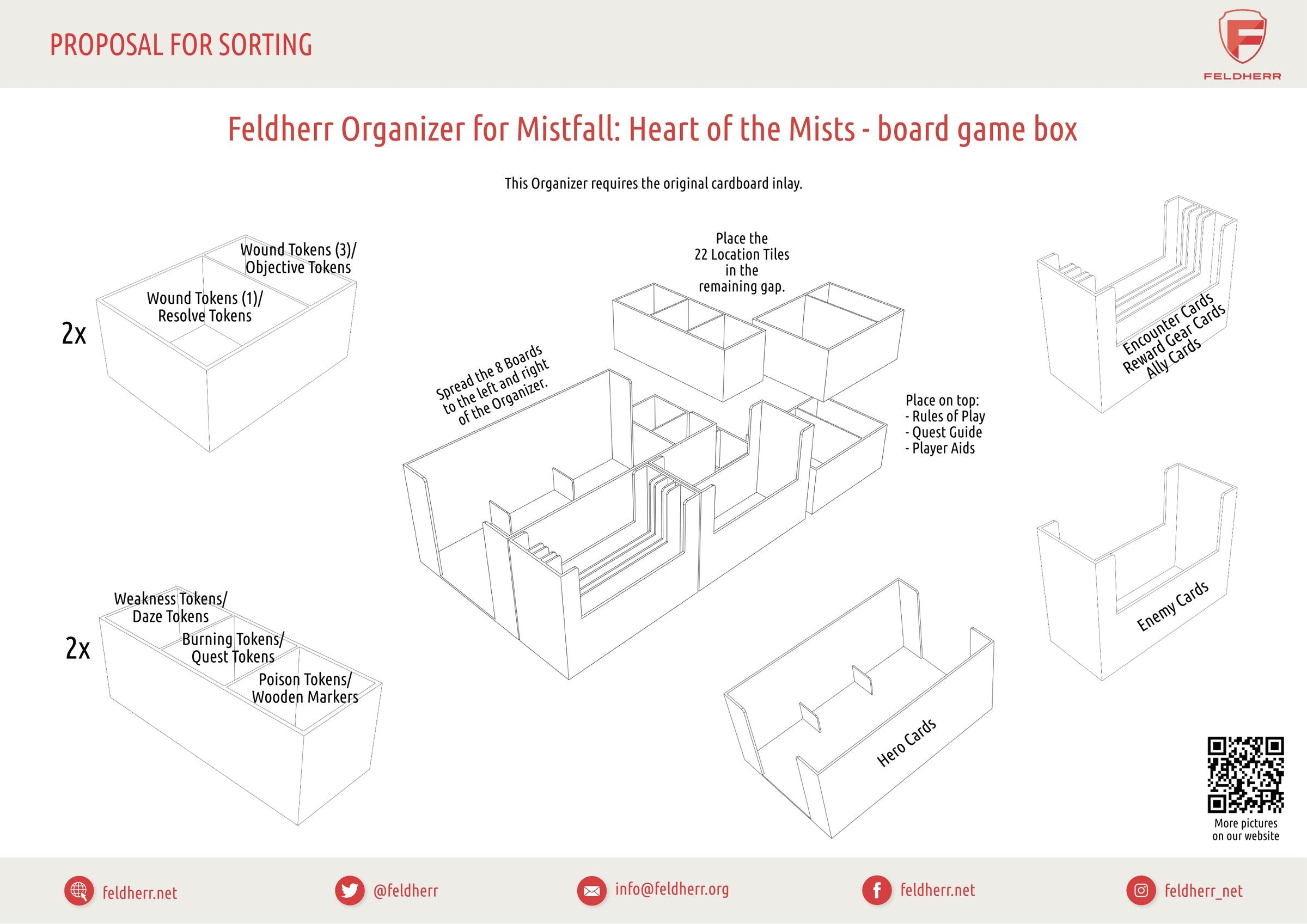 - The Organizer fits into the original “Mistfall: Heart of the Mists” board game box