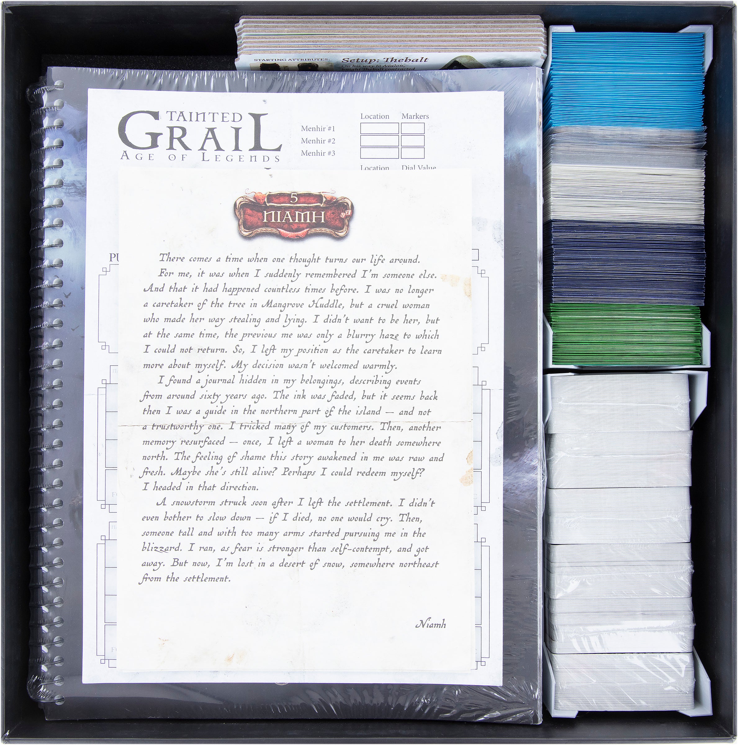• The Organizer Set provides room for all unlocked Stretch Goals from the Kickstarter campaign of “Tainted Grail: The Fall of Avalon”