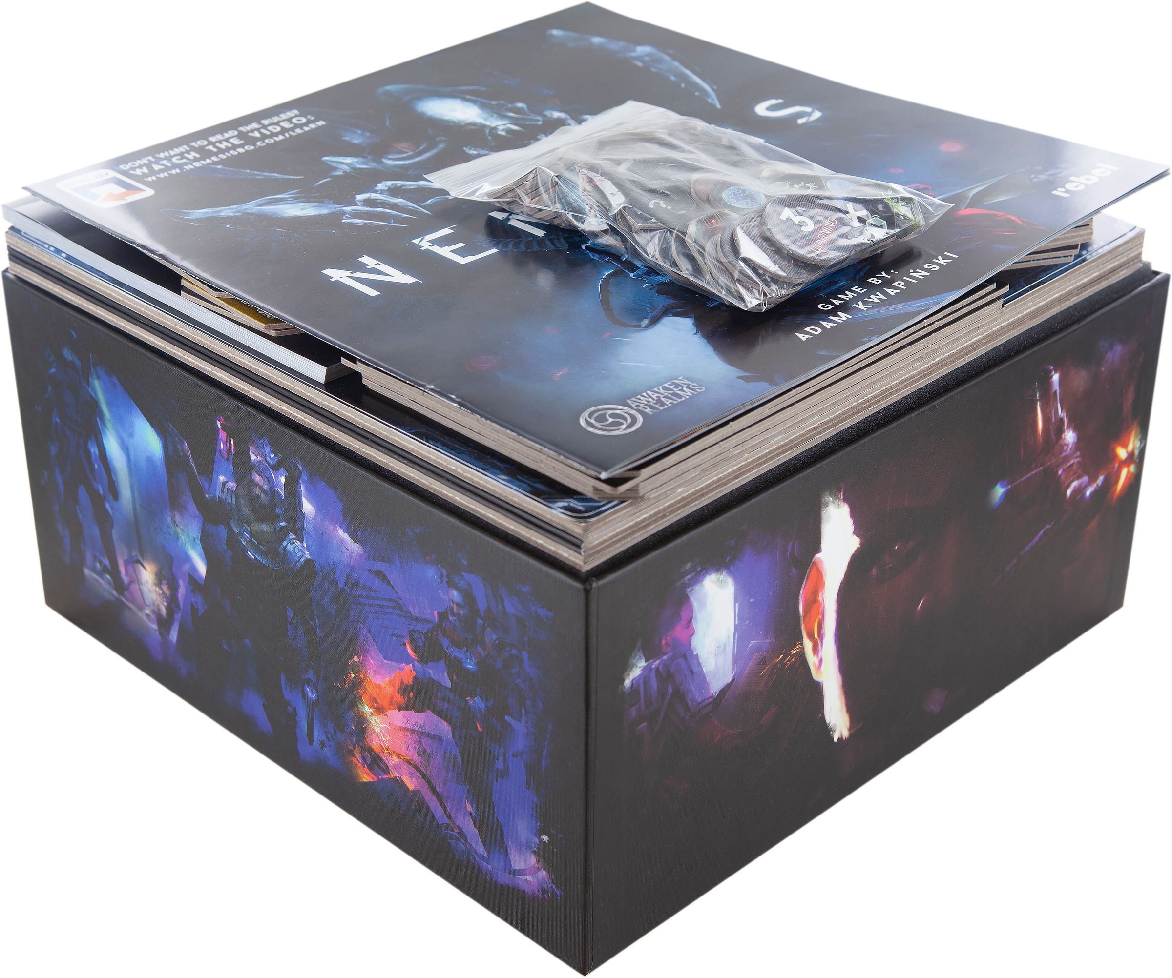 - The set fits exactly into the original 'Nemesis' board game box by Awaken Realms.