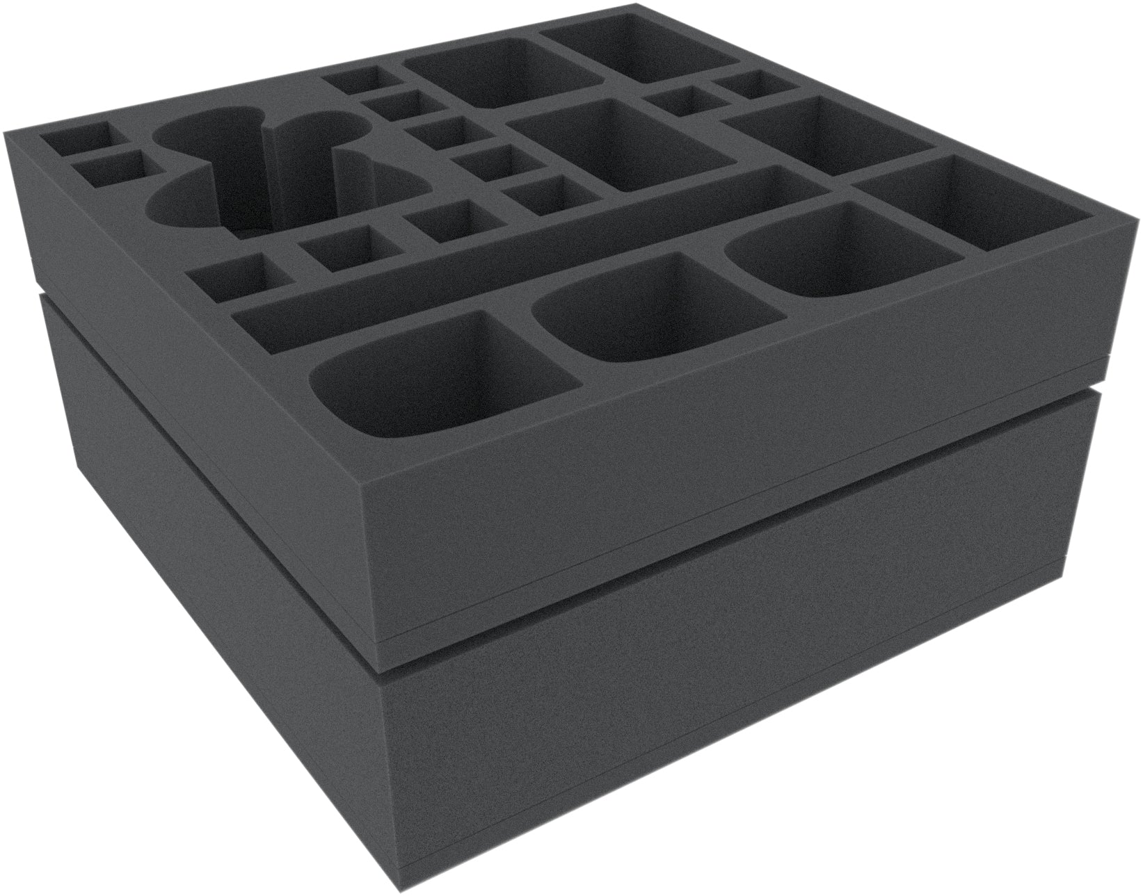 Hereby, all miniatures are securely packed, the game material neatly stowed away and the contents of your box, even on the bumpiest paths to the next game, optimally protected.