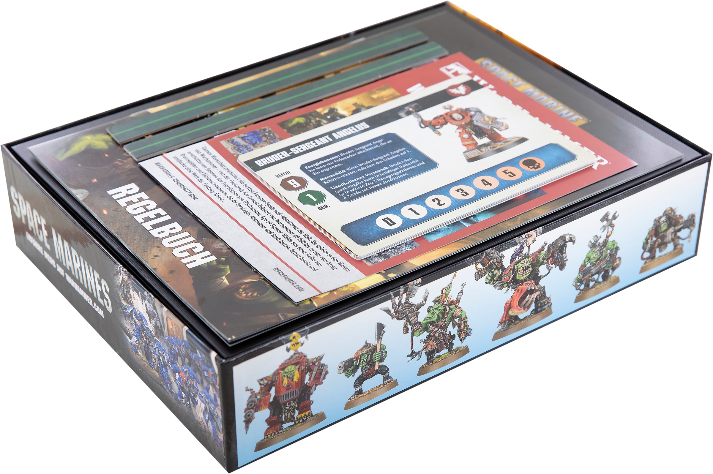The insert fits exactly into the original GamesWorkshop game box and provides protection and order for your models and the game material.