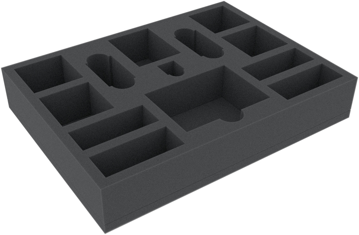 - The foam tray has the dimensions: 293 mm x 219 mm x 50 mm total height (40 mm usable height + 10 mm foam base)