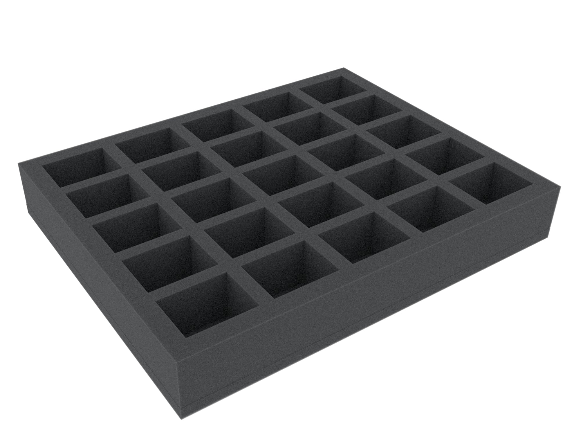 - 1 mat with 25 compartments: 345 mm x 275 mm x 50 mm total height (40 mm usable height + 10 mm foam base)