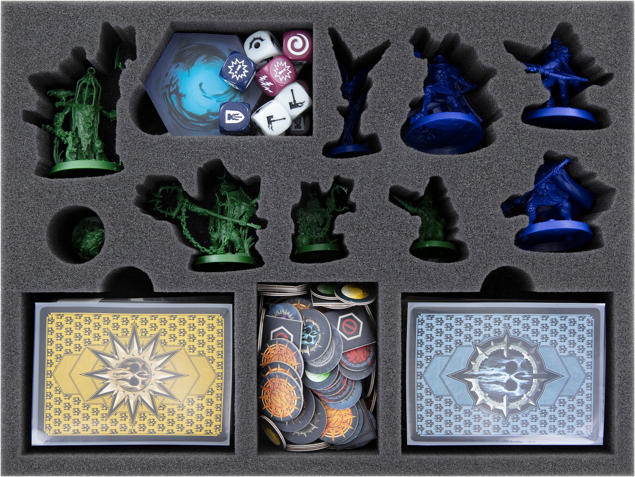 - The foam set offers space for all miniatures, cards, and the entire game material from “Warhammer Underworlds: Harrowdeep".