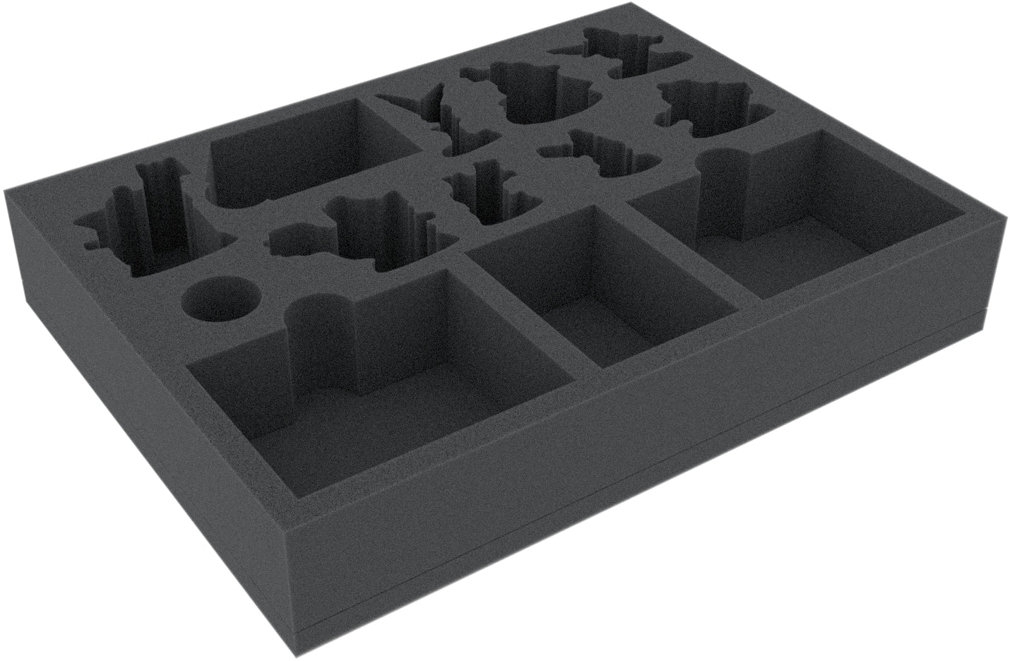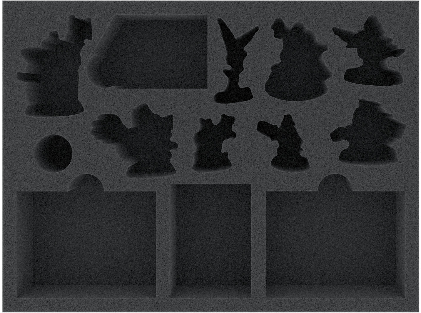 The custom-fit cut ensures that the miniatures have a tight fit and stay in place, not bumping into each other, even when transported over the Shadow Sea. The soft foam reliably protects not only your figures from snapped off details but also the colors of your painted models from ugly scratches and chipping paint.