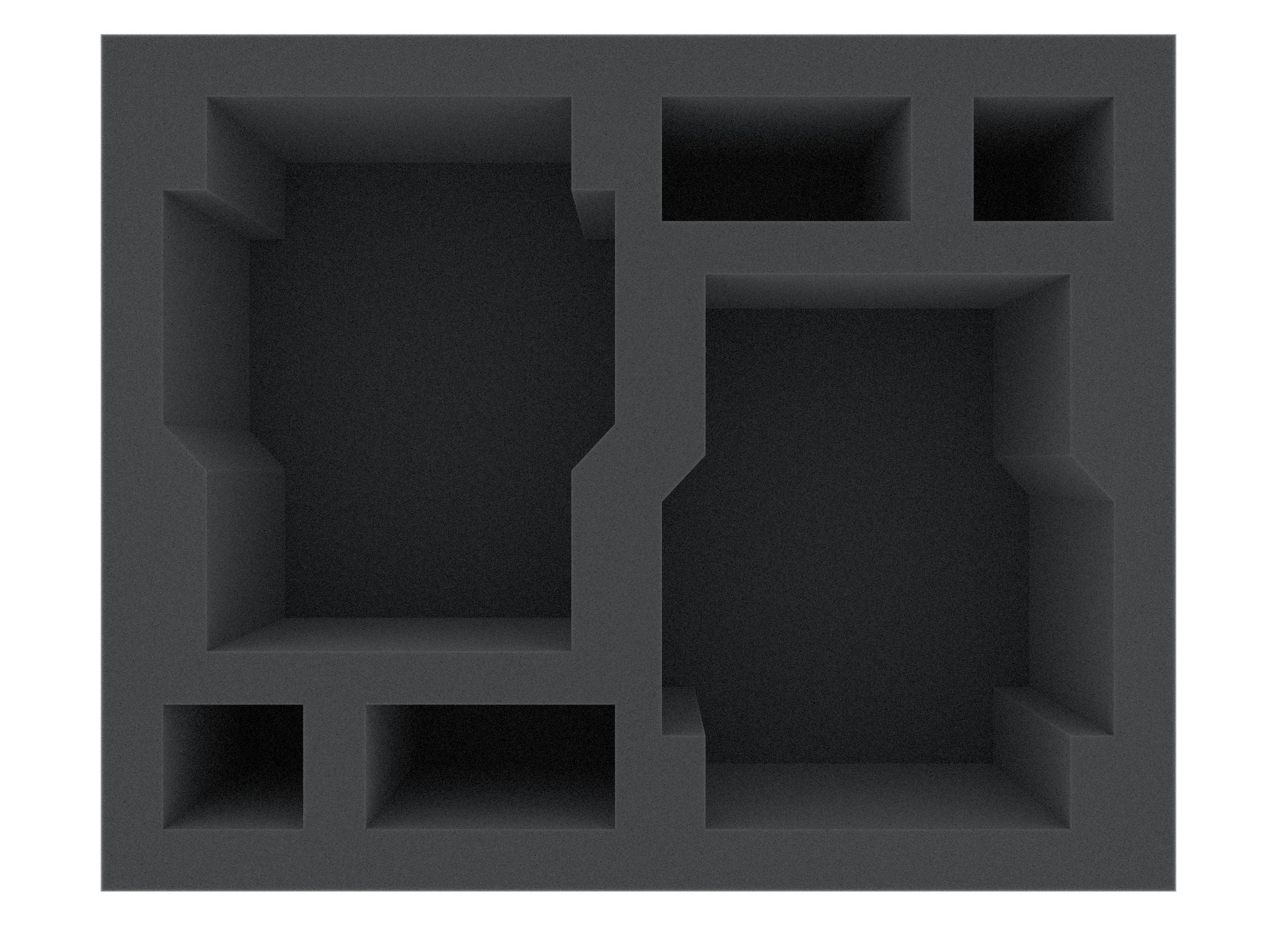 The Full-Size foam tray has the dimensions: 345 mm x 275 mm x 110 mm mm total height (100 mm usable height + 10 mm foam base).