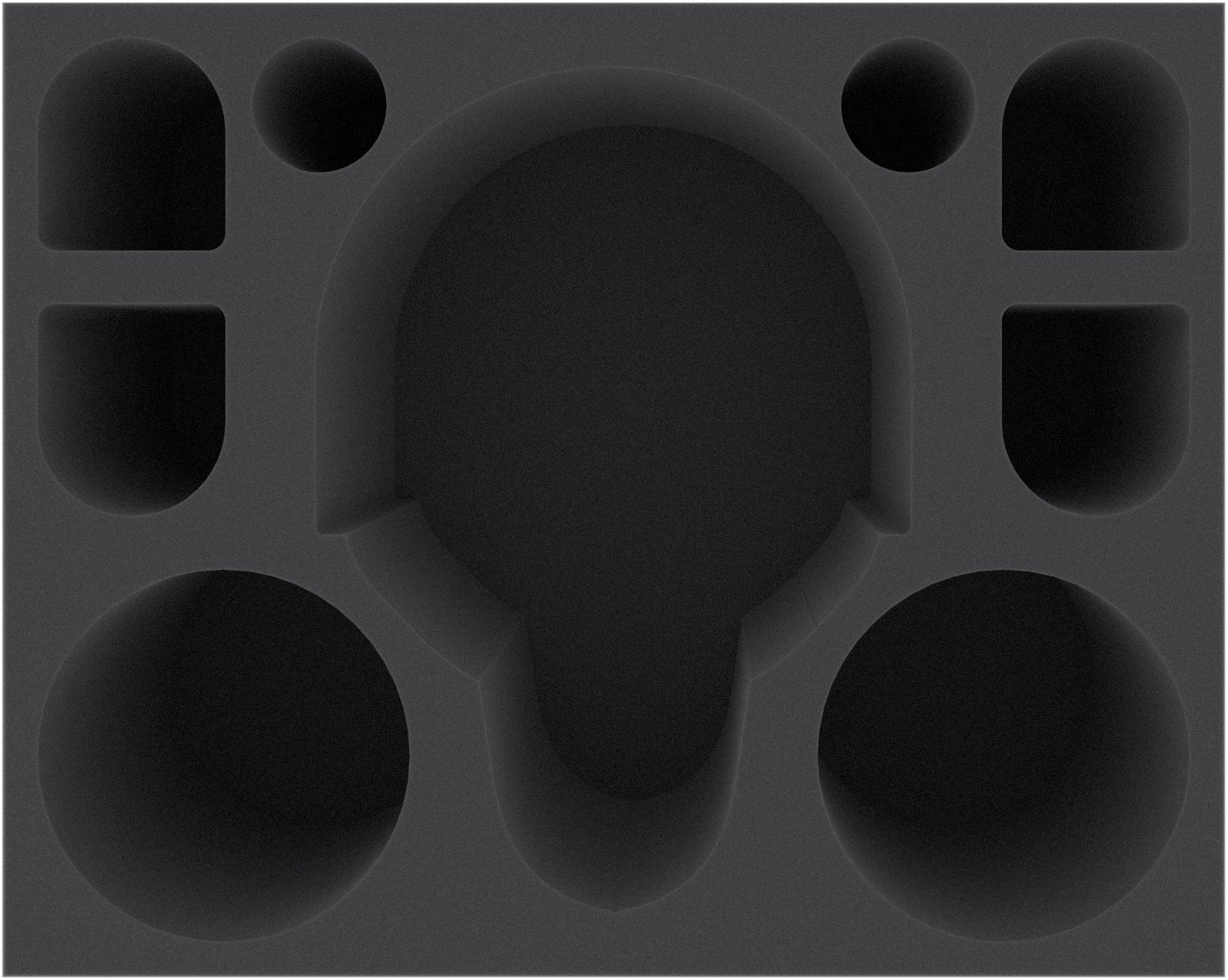 The large compartment in the middle is tailored to one model of the AAT Trade Federation Battle Tank including base. Thanks to the precisely fitting cut, the miniature remains securely in place even during transport. The soft foam material reliably protects the laser cannons, antennas and the droid in the turret from damage. And of course, the colors of the painted miniature are also preserved from scratches and abrasion.