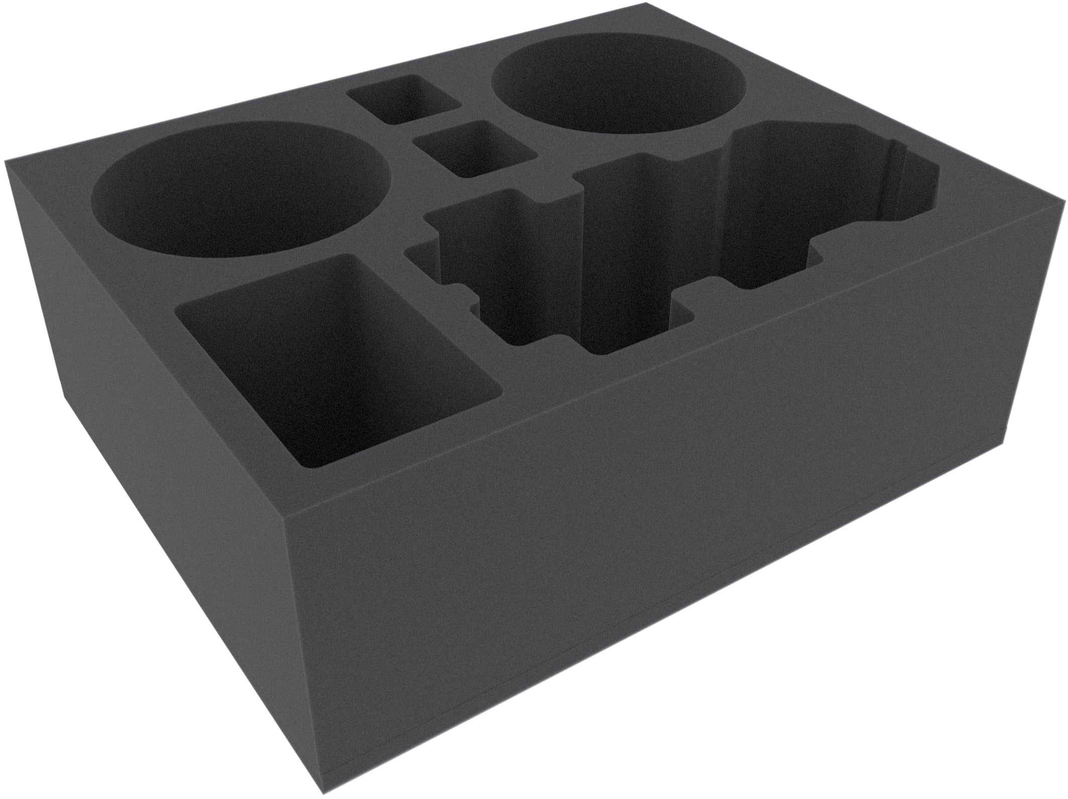 The Full-Size foam tray has the dimensions: 345 mm x 275 mm x 125 mm total height (115 mm usable height + 10 mm foam base).