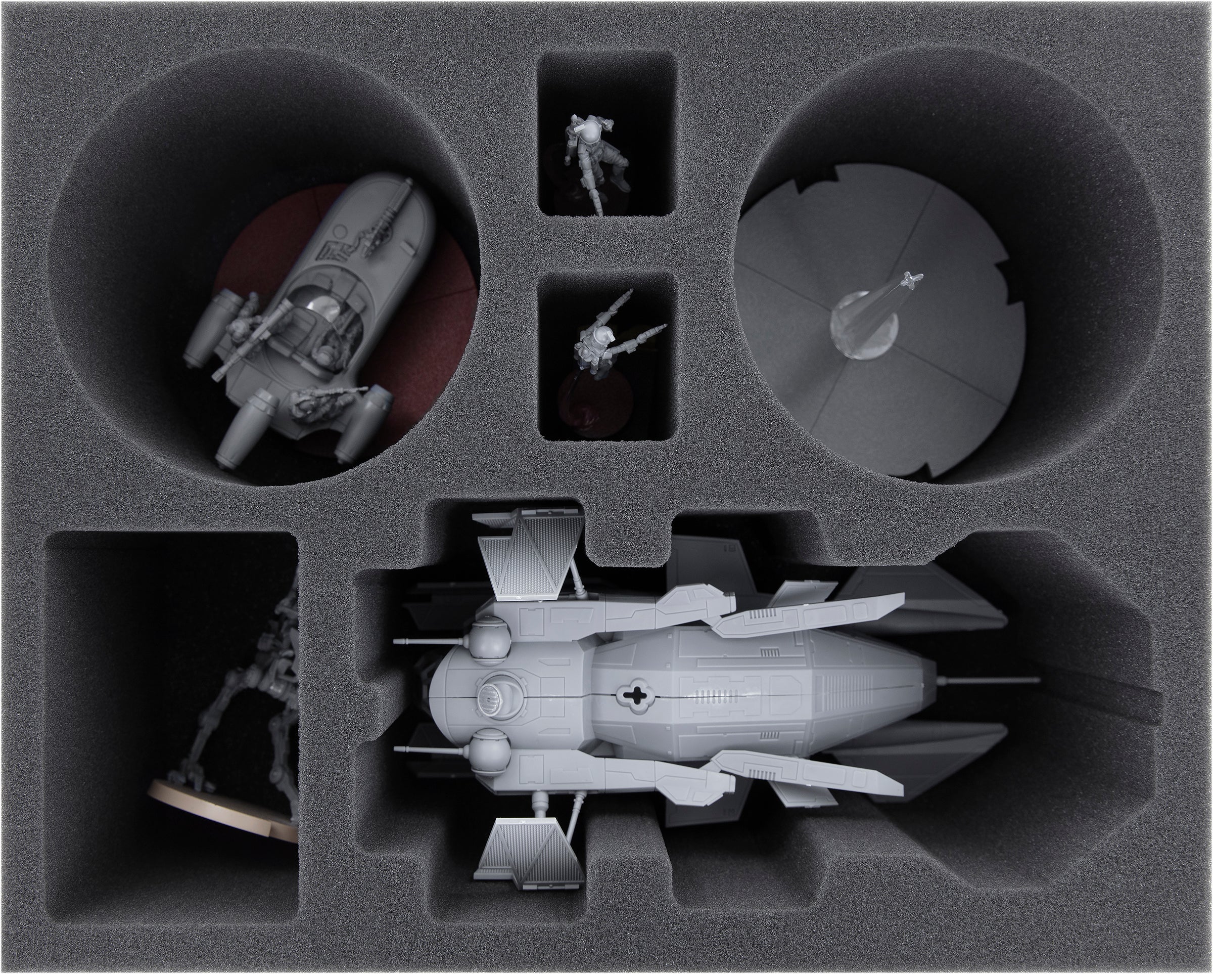 The large compartment is miniature-precisely cut to fit a model of the LAAT/le Patrol Transport without base.