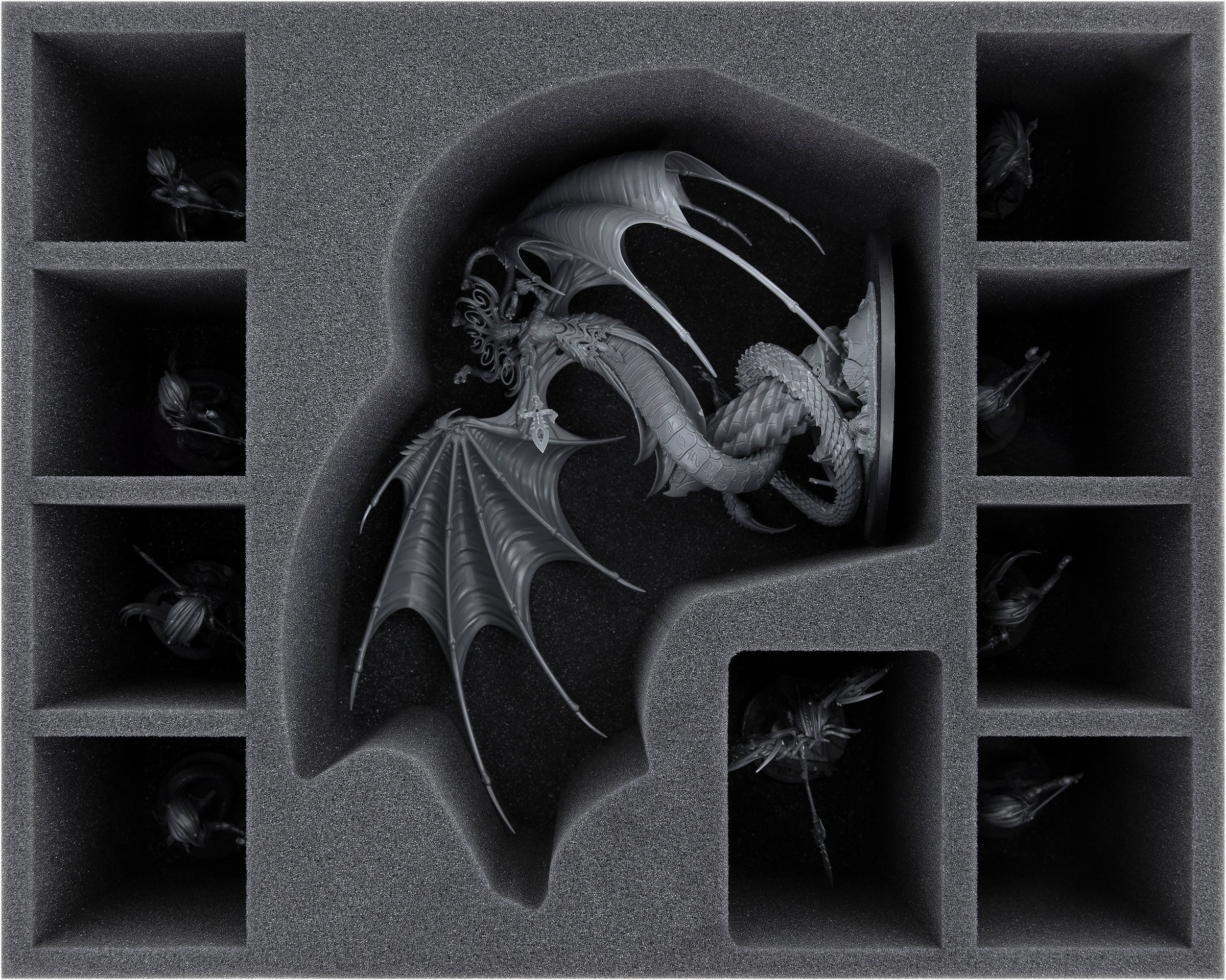 A compartment miniature-precisely cut to fit Morathi ensures that your model has a tight fit and won't slip during transport. The soft, fine-pored foam reliably protects the fine details from bending and breaking off. If you have painted the Shadow Queen, you can be sure that the foam also protects against scratches and chipping paint.