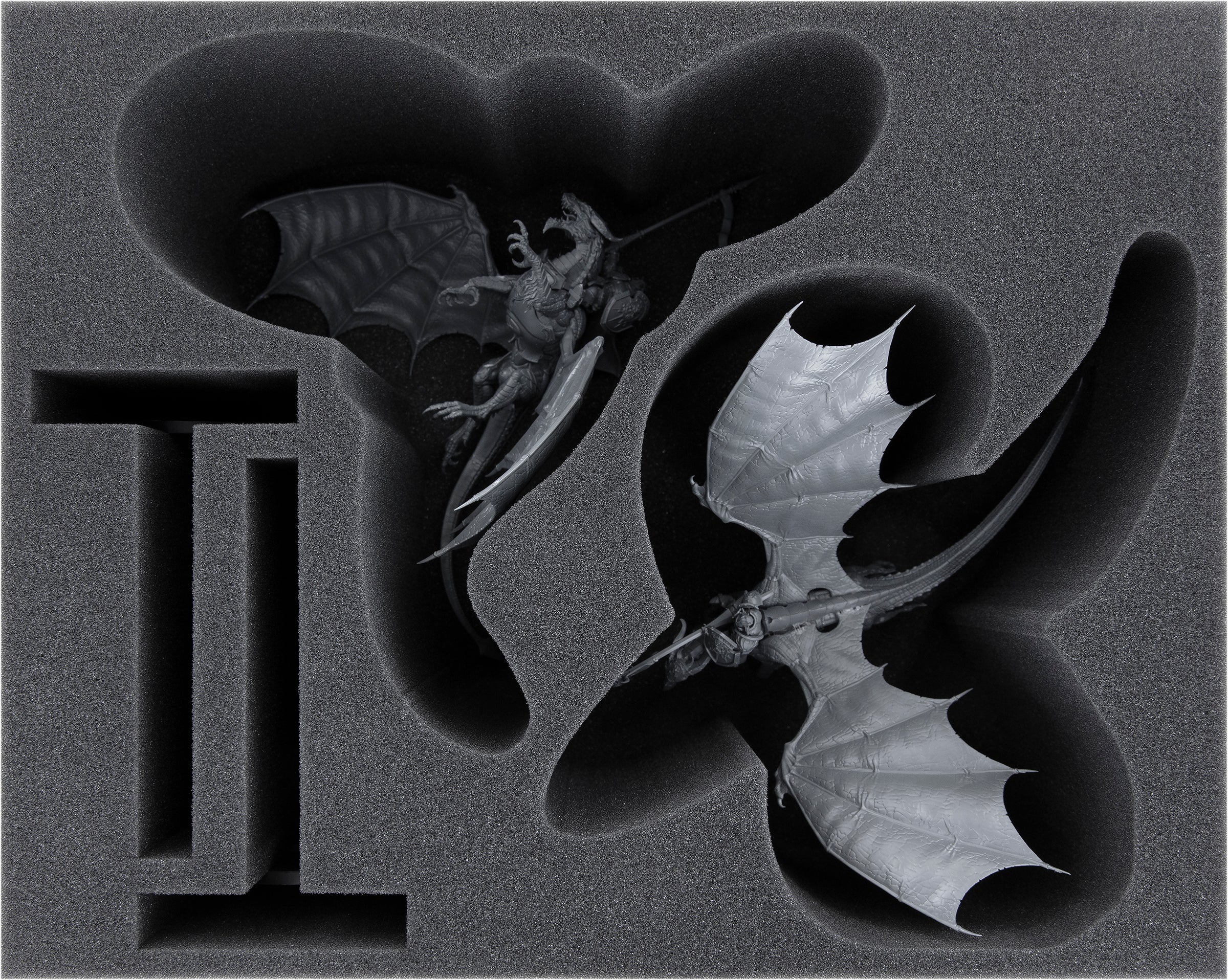 The soft, fine-pored foam optimally protects the delicate wings and all other filigree details from damage. When the miniatures are painted after hours of intensive work, you can relax (until the next battle) because the colors are also safe from abrasion and scratches here.
