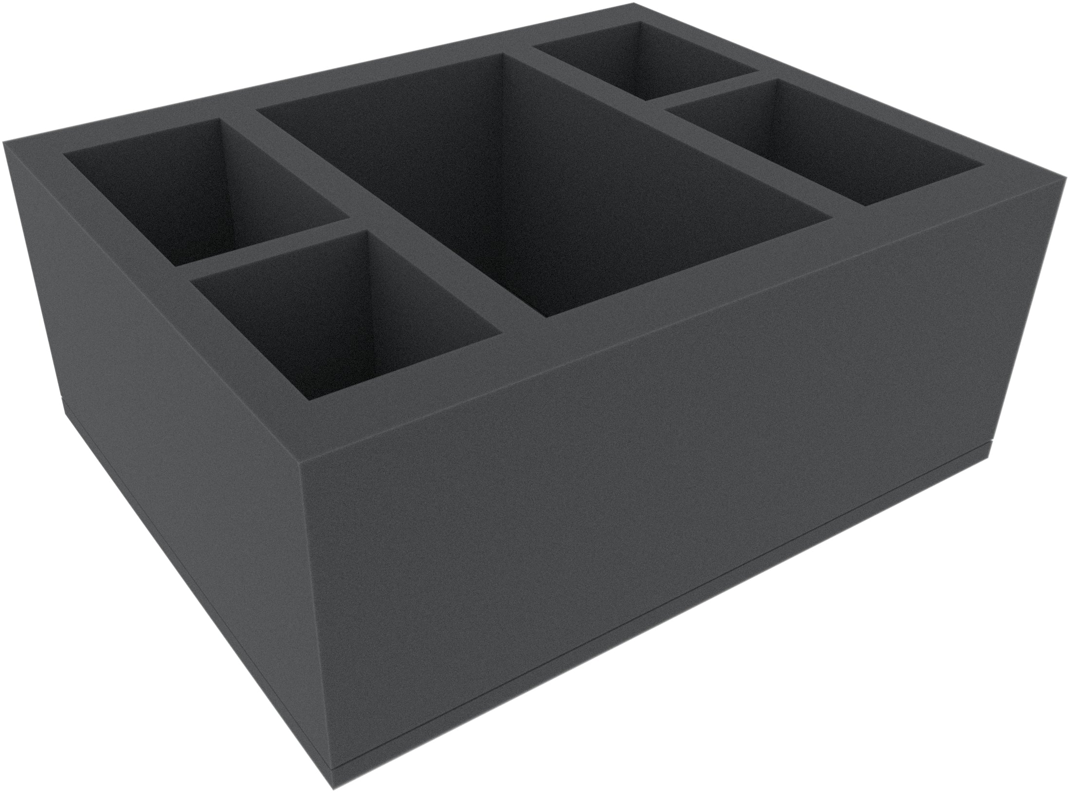 This 140 mm high foam tray is divided into 5 compartments. It is particularly suitable for the safe storage of tabletop and board game miniatures, as well as other fragile models and small parts.