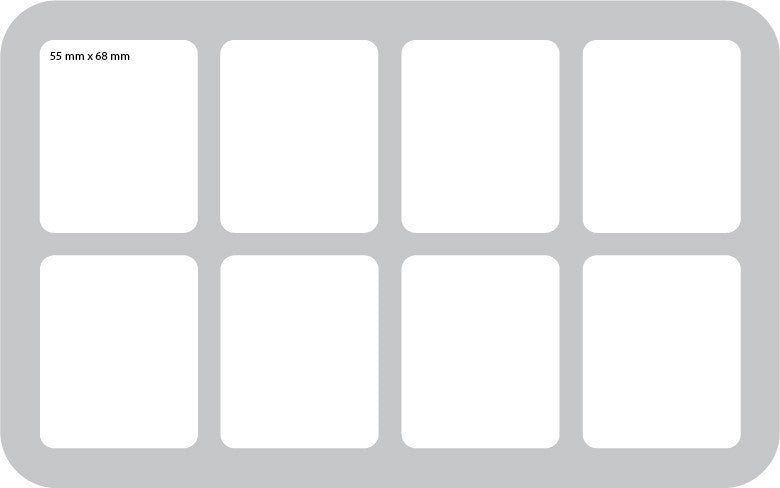 - Each of the 8 compartments is 68 mm long x 55 mm wide x 30 mm deep
