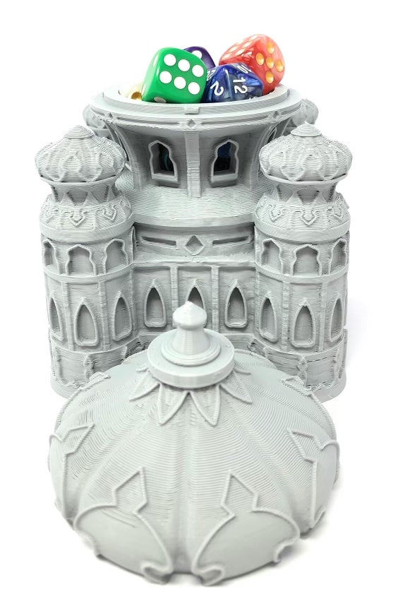 3D printed - detailed dice jail. The Dice Jail can also be used as a terrain part for your miniatures game or as a center piece for your next DnD session.