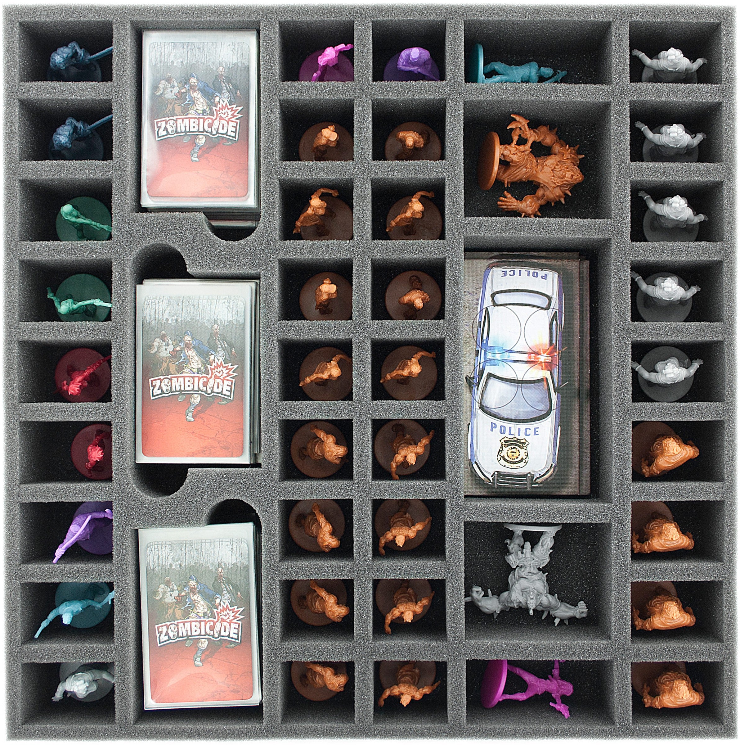 • 1 bandeja de espuma de 35 mm (1,4 pulgadas) con 54 ranuras para cajas de juego de boadgame Zombicide