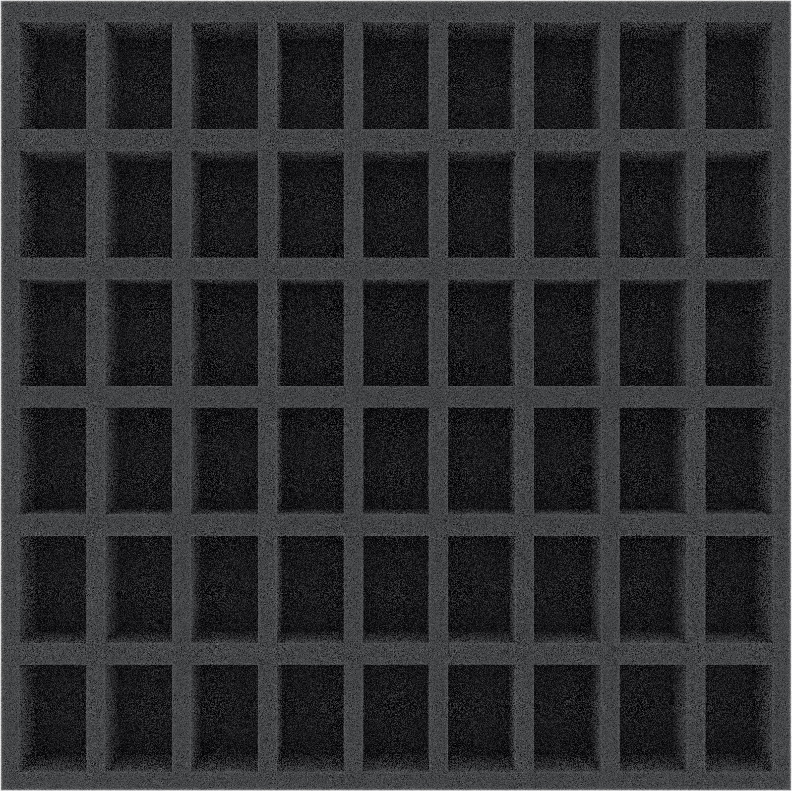 Bandeja de espuma con 54 ranuras. Listo para usar - base de espuma pegada de 10 mm. Tamaño de la ranura: (An x Al x Pr) 25 mm x 40 mm x 25 de altura.