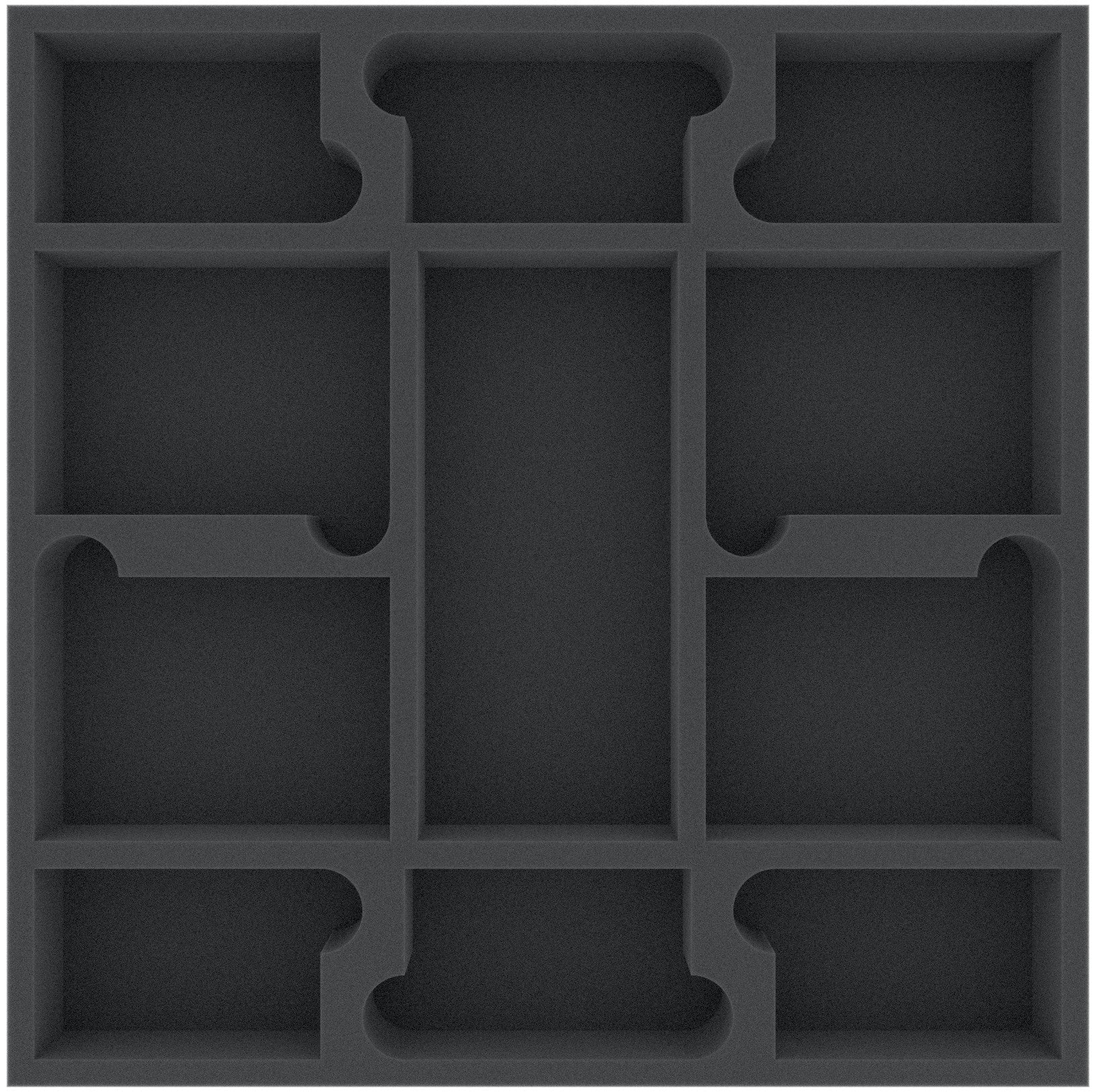 Foam tray with 11 compartments for many original boardgame boxes. The 11 compartments of different sizes are ideal to safely and clearly store accessories like cards and tokens, as well as other game material.